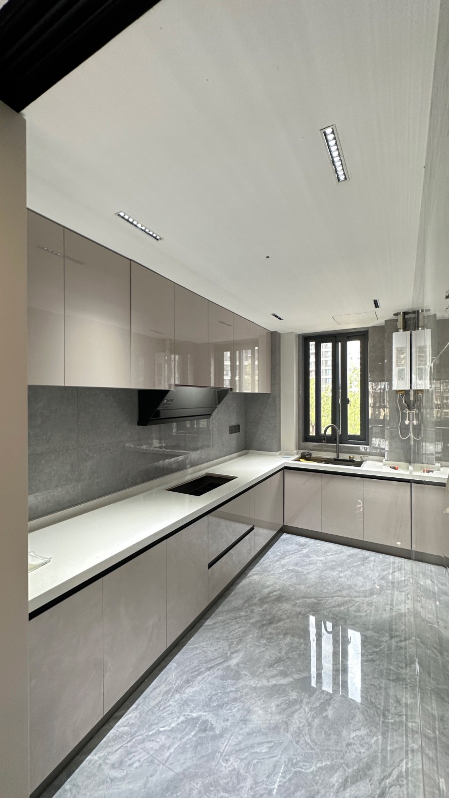 厨房合理的设计让使用的人更加便利,洗菜池、料理台、灶具等合理的进行布局,得到一个适合一家人使用的厨房。餐厅与厨房之间设计冰箱柜,将每一寸空间合理利用到位,完成收纳容量的同时,令视觉感延续。