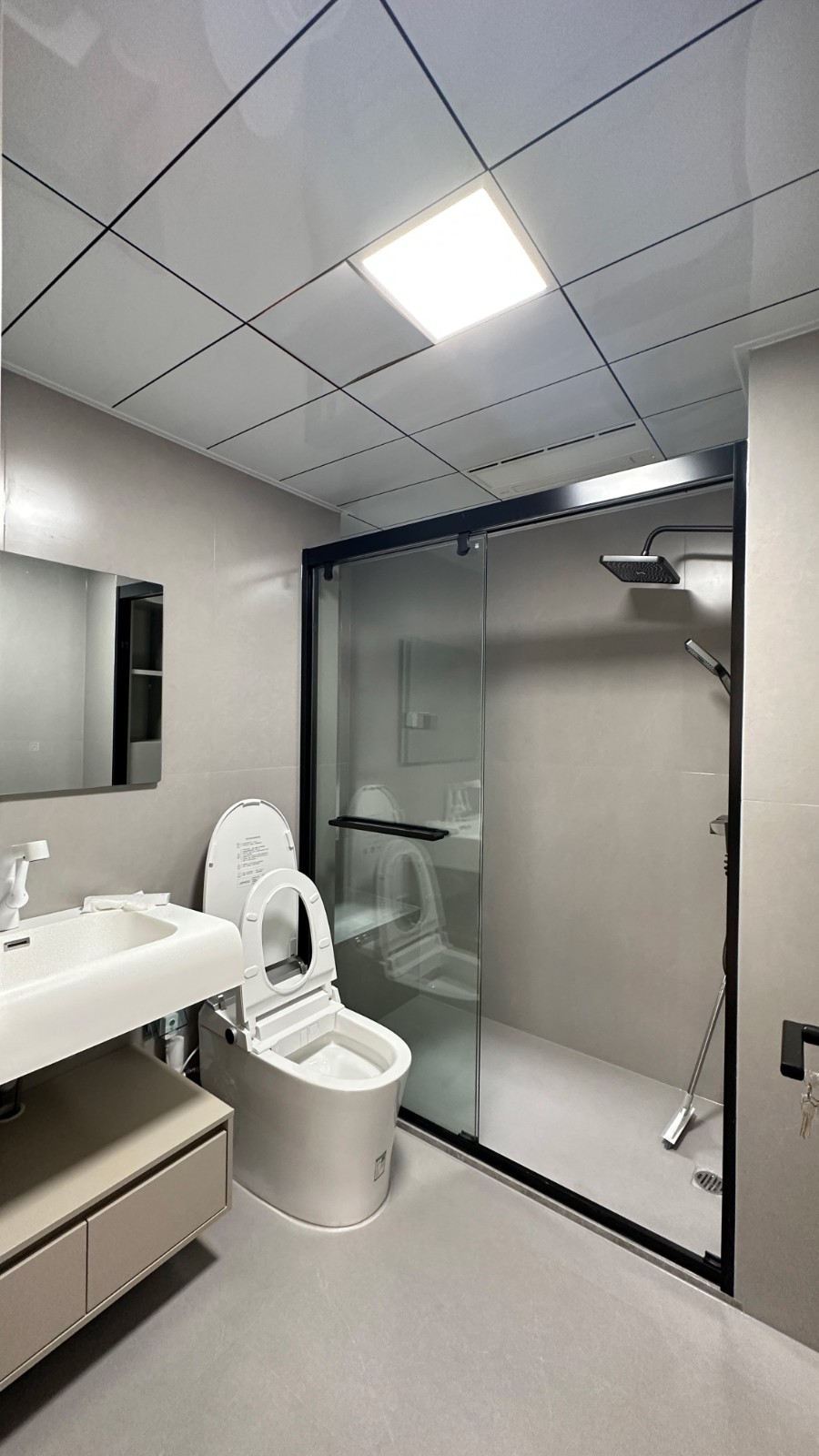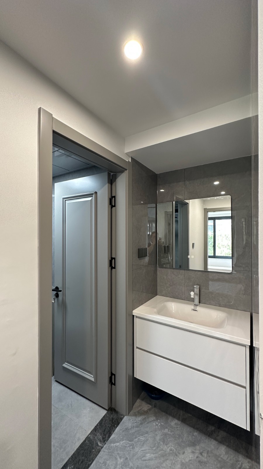 主卫强调实用,简洁明了整洁。灰色与白色的搭配,增加视觉空间感受。