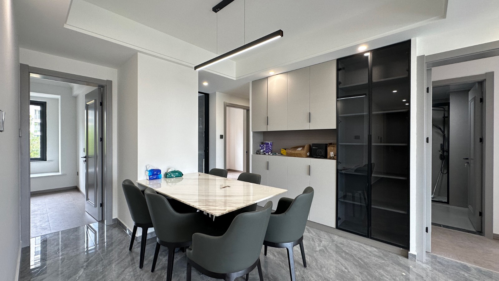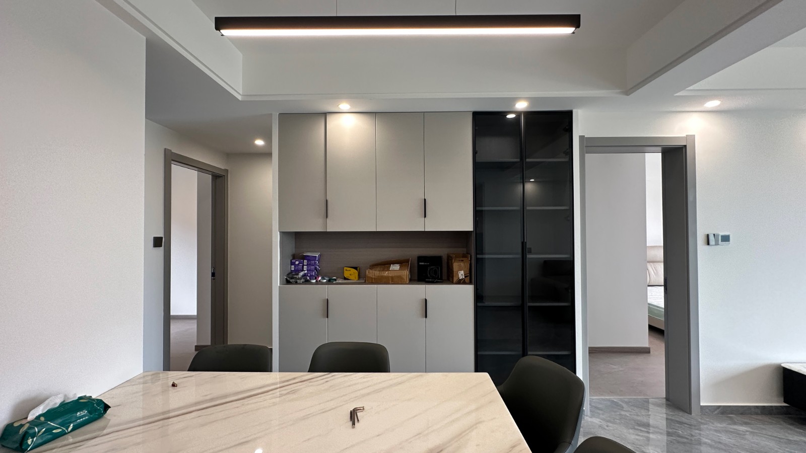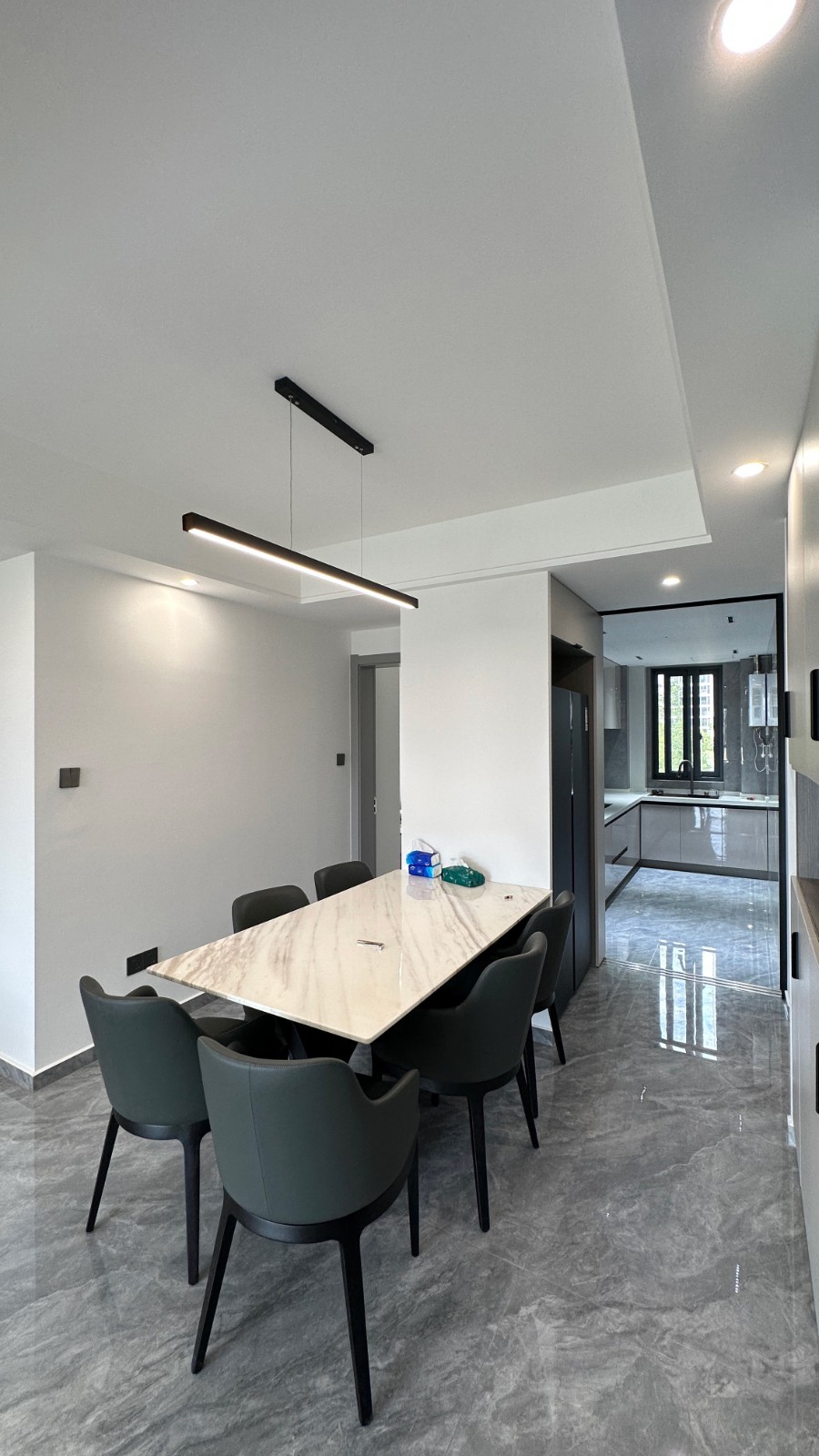 餐厅选择线性吊顶,简洁的视觉美感,空间不冲突,空间充满自然与惬意,整体不拥挤,更显出紧凑精致的家居生活。