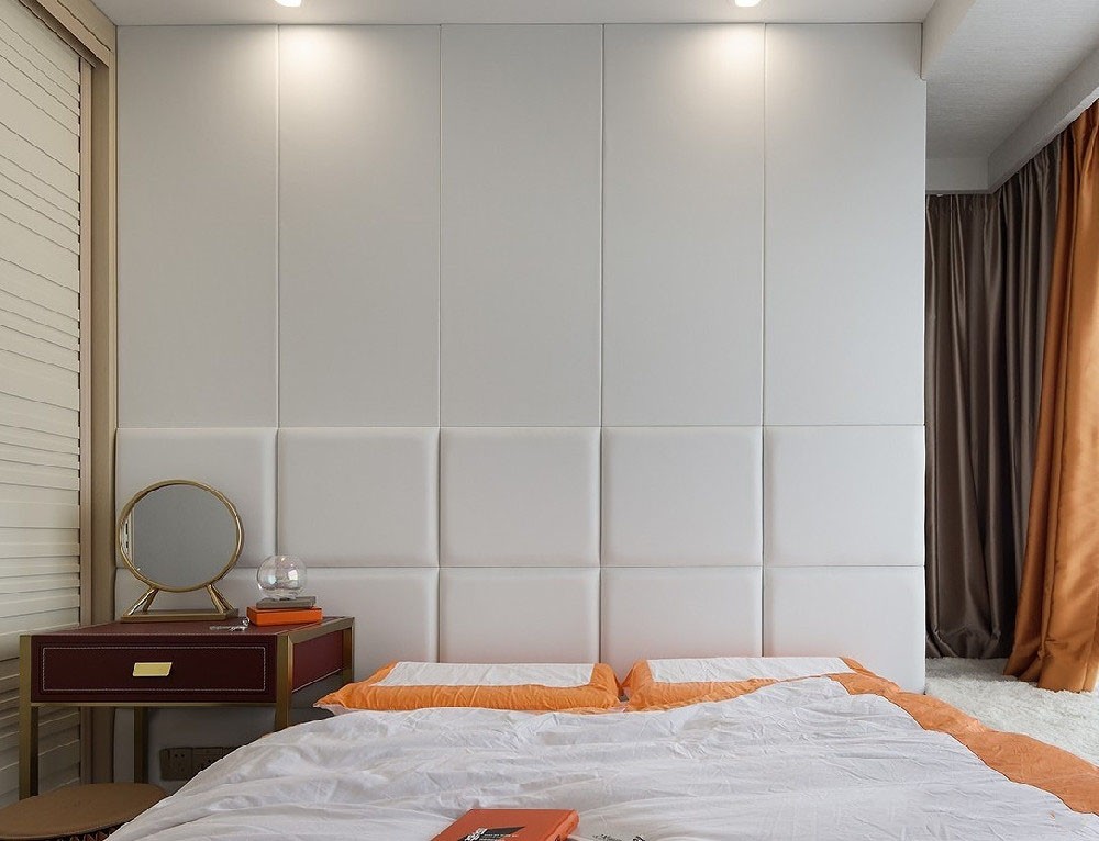 主卧以橙色+白色的床品,搭配同色系窗帘,营造出整体清爽、轻松的感觉。飘窗偶有阳光串门,可以一边慵懒散躺,一边享受日光浴。