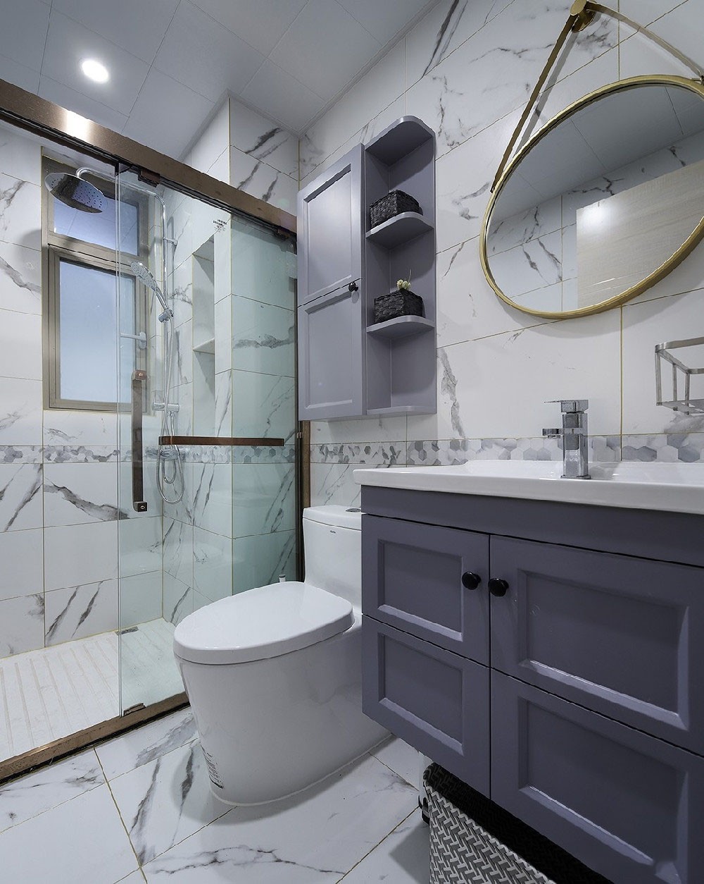 卫生间的瓷砖选用带有黑色纹路的白砖,避免了刻意的有序排列,简单明了的组合反而让空间看起来更具***感。