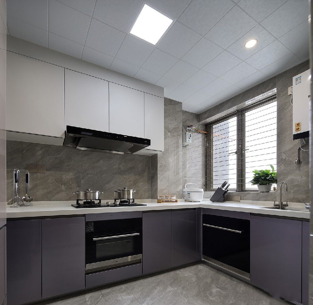 餐厅和厨房之间用活动移门对空间进行划分,独立便捷又完整。 厨房素雅大气,功能分区恰到好处。白色吊柜整洁干净,柜门为按压式,既方便又省力。