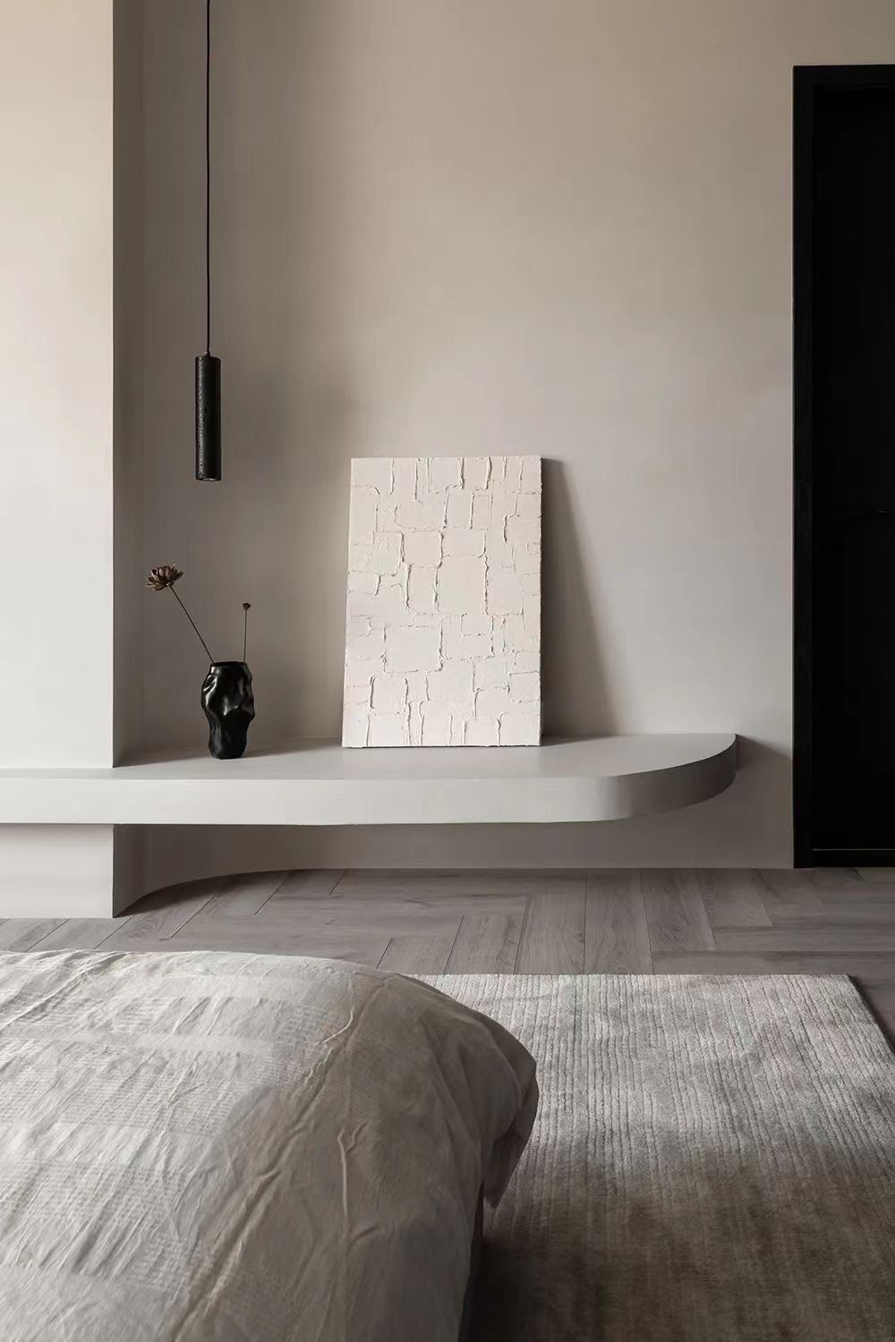床尾利用改造的墙面设计了一处小景,装饰画是业主亲自画的,每天醒来能看到自己热爱的事情也是一种幸福吧