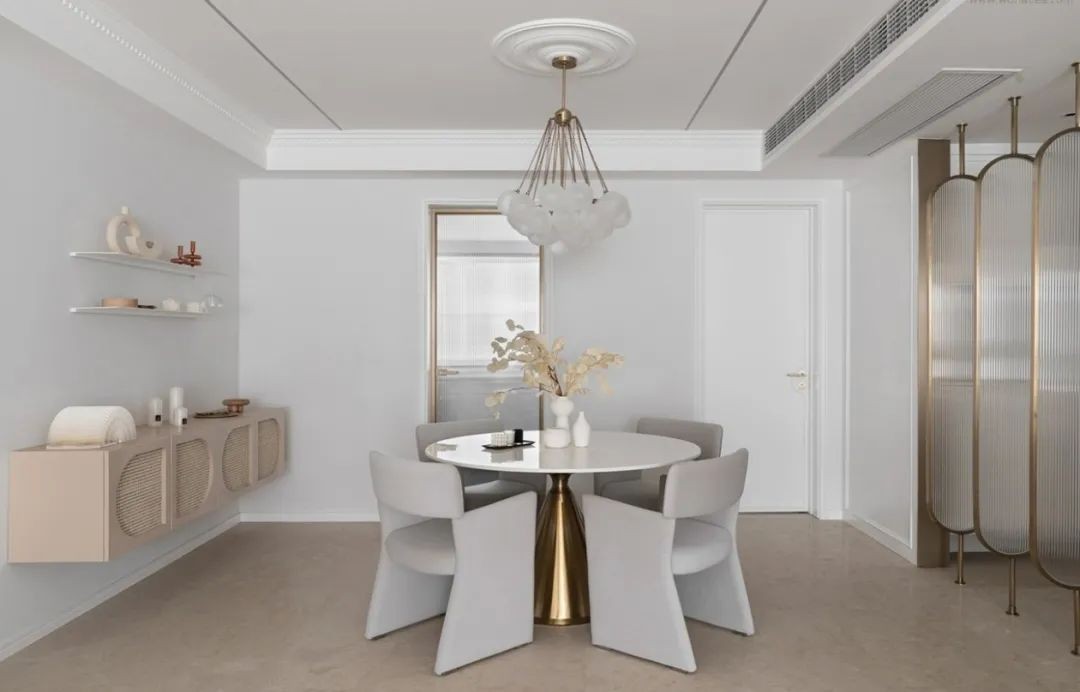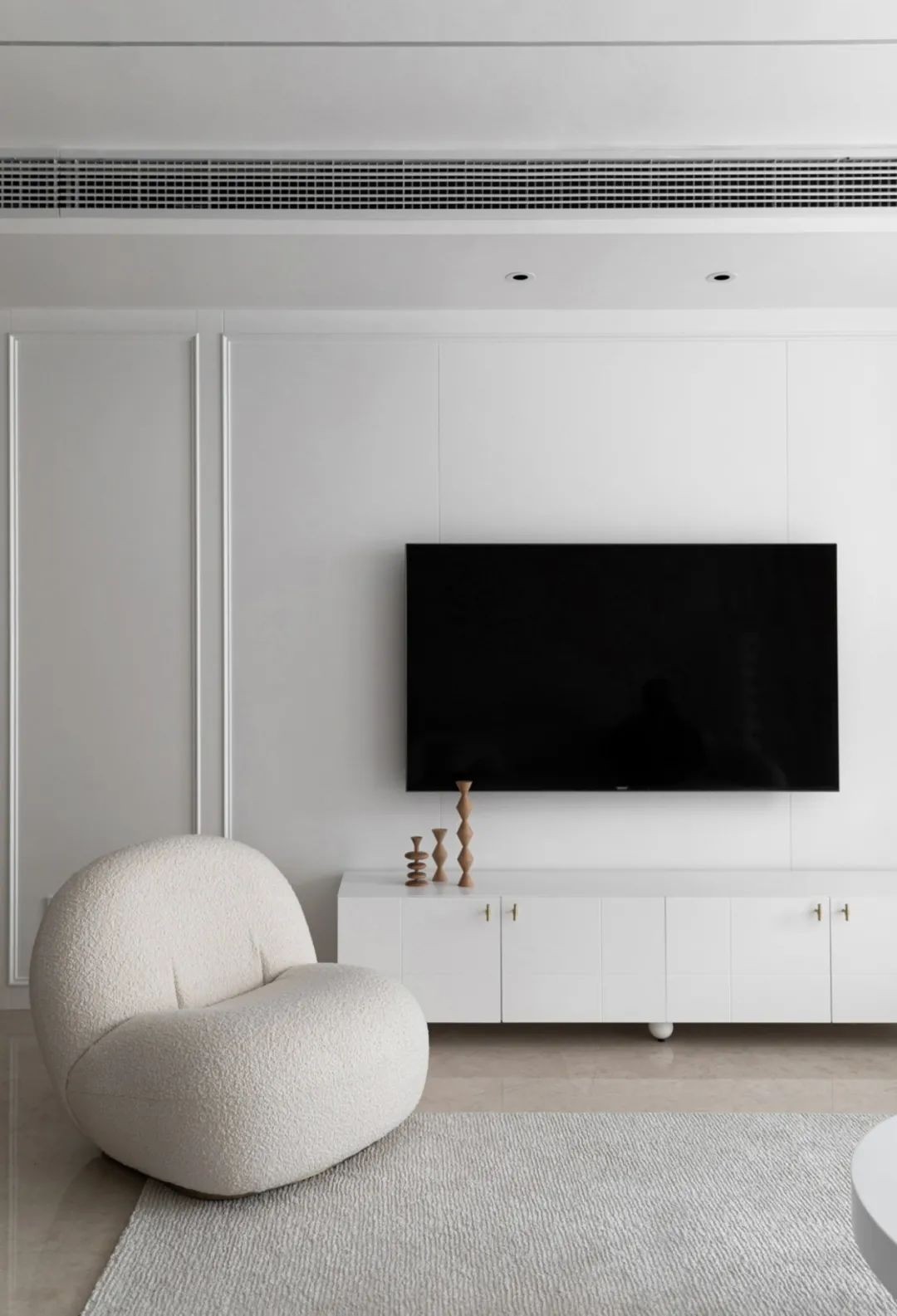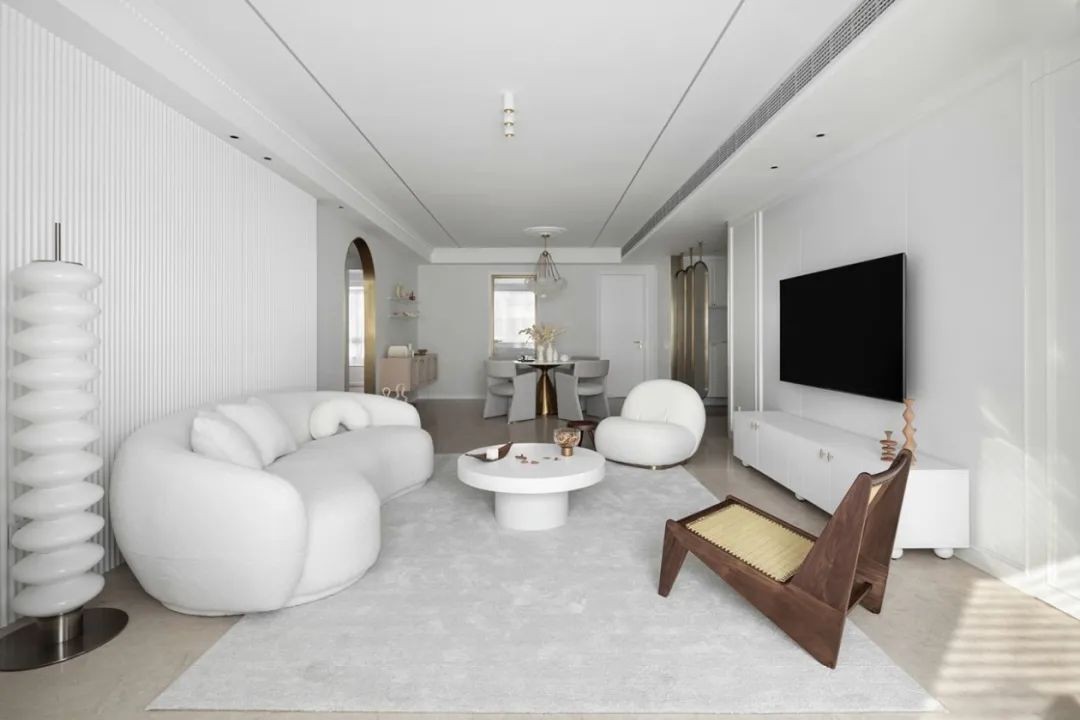 采取极简净白的硬装空间,营造出一种独特的极简轻奢风格氛围