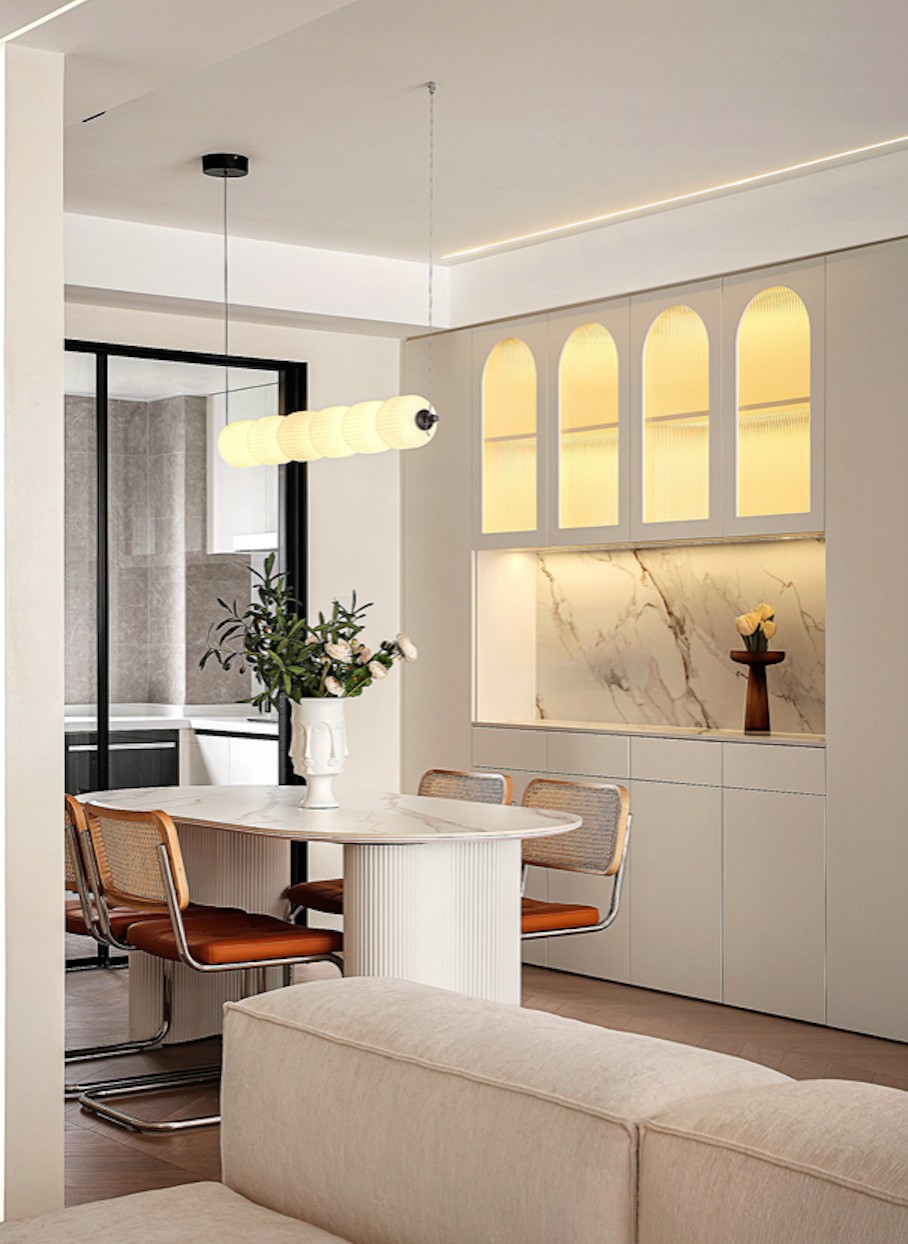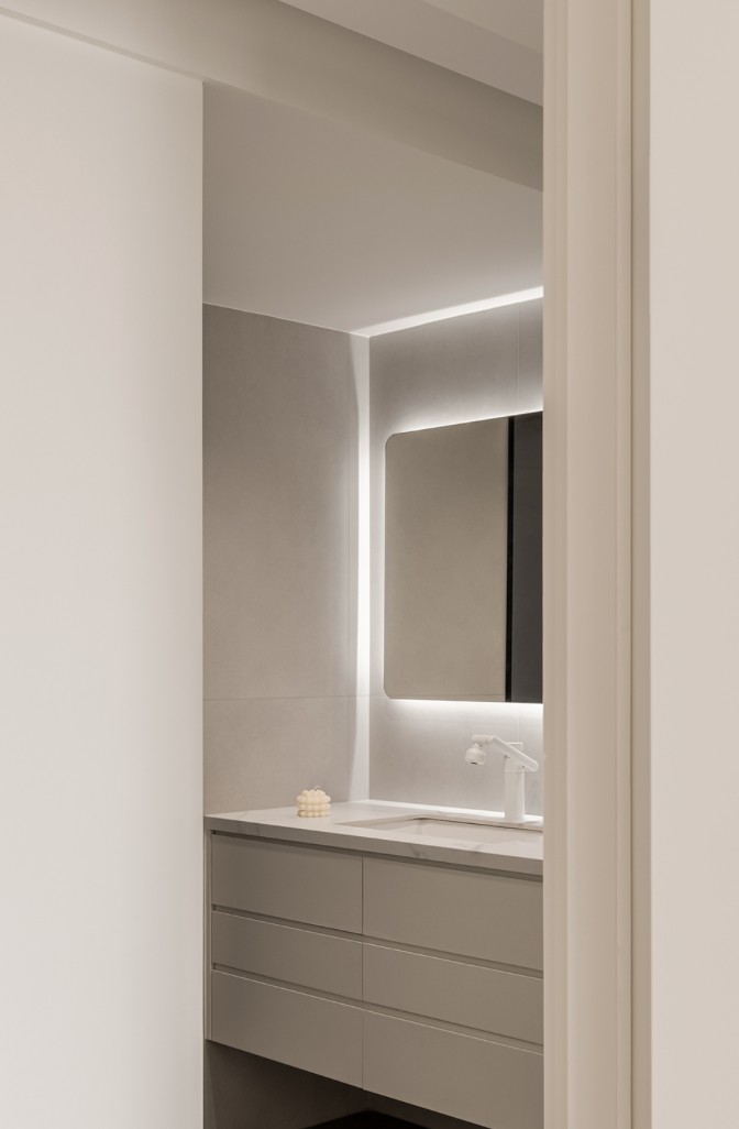 打通沙发背后这一堵墙,形成横厅的格局,空间立马开阔了很多,有了大平层的既视感。