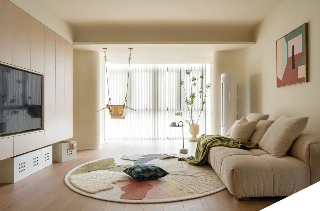 本案的设计重点集中在如何融合实用和趣味性,创造一个相互陪伴成长的家,带娃时其乐融融,独处时放松自由