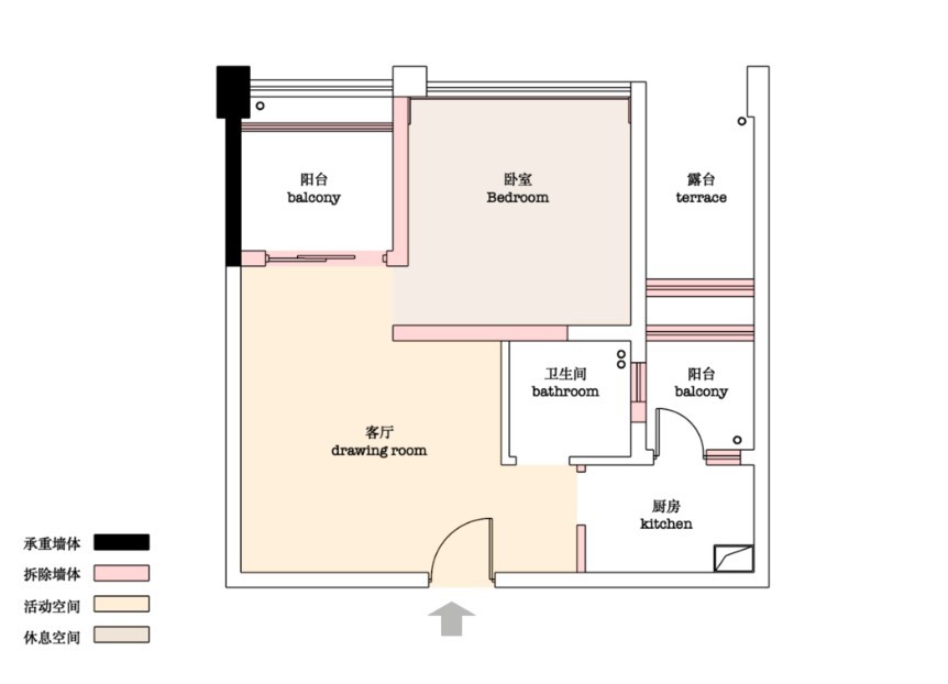 客厅与卧室相同,增加空间,增加动线