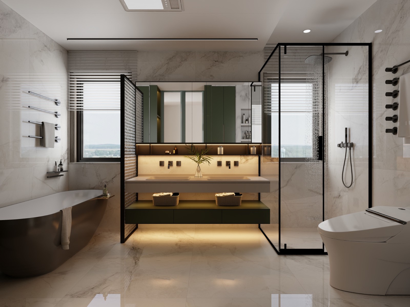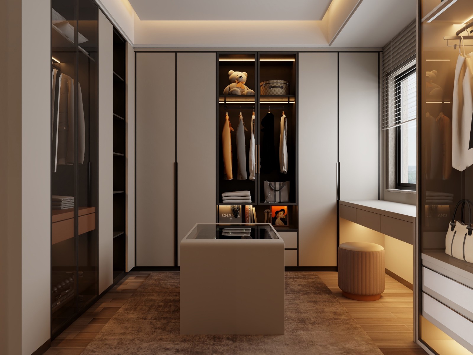 每个卧室都做成了套间设计,配置独立卫生间,独立衣帽间。