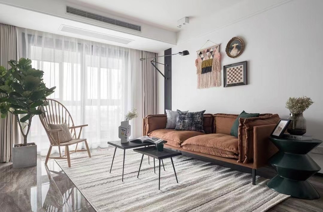 客厅一角,复古沙发,大面积地毯,追求品质生活。