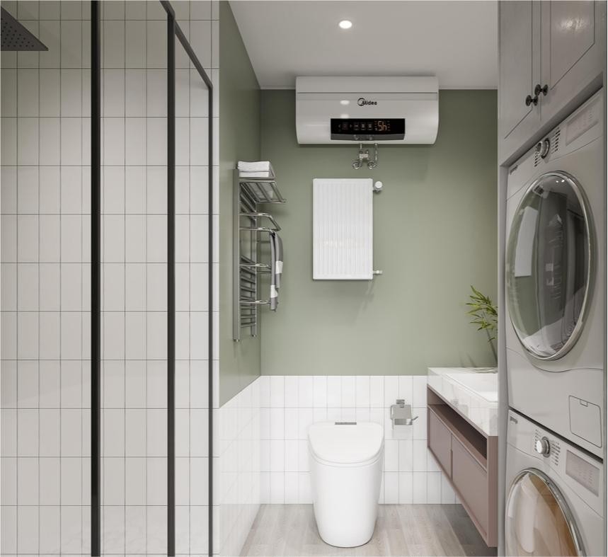 卫生间墙面做了拼色,干区上墙部分防水漆涂刷,更显层次感。