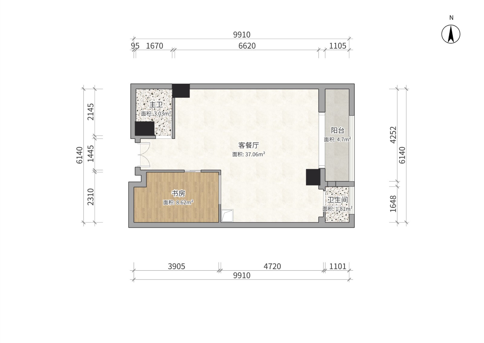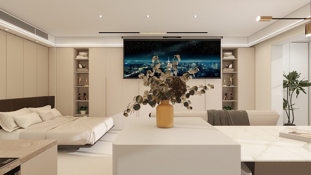 原本打算隔个卧室出来,但是隔出来的卧室面积较小,最终选择了这种开放的