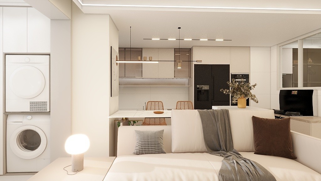 打掉了原本客厅与厨房之间的墙体,做开放式厨房