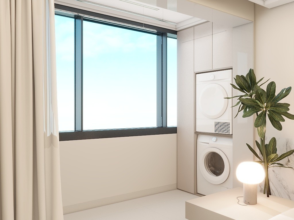 阳台一侧放置洗衣机,另一侧做柜子