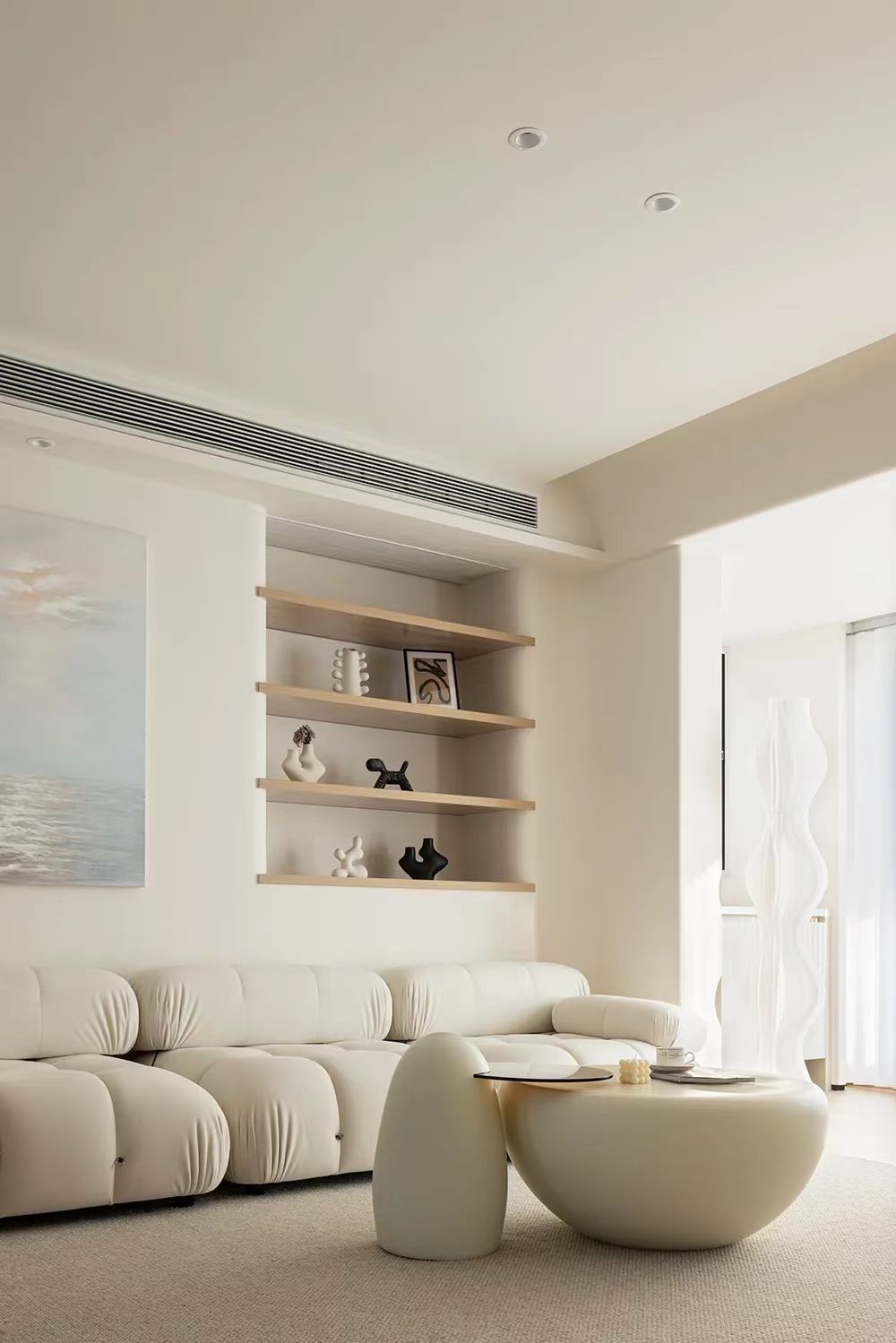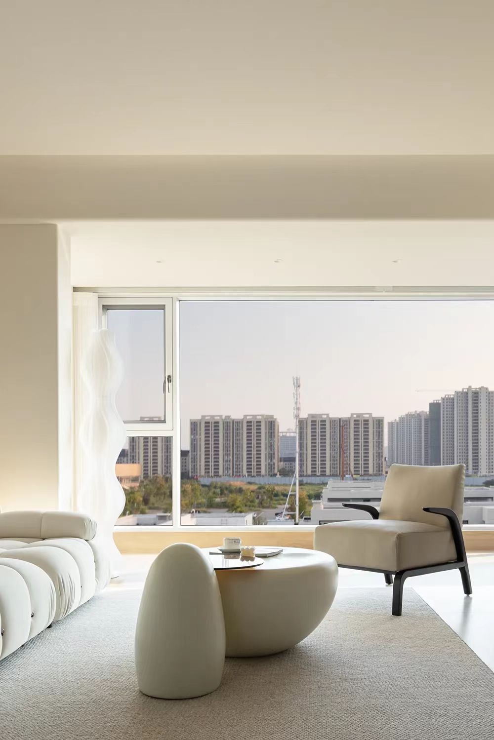 柔软细腻的布艺沙发,搭配低调的浅咖色地毯,是客厅中***慵懒的空间。