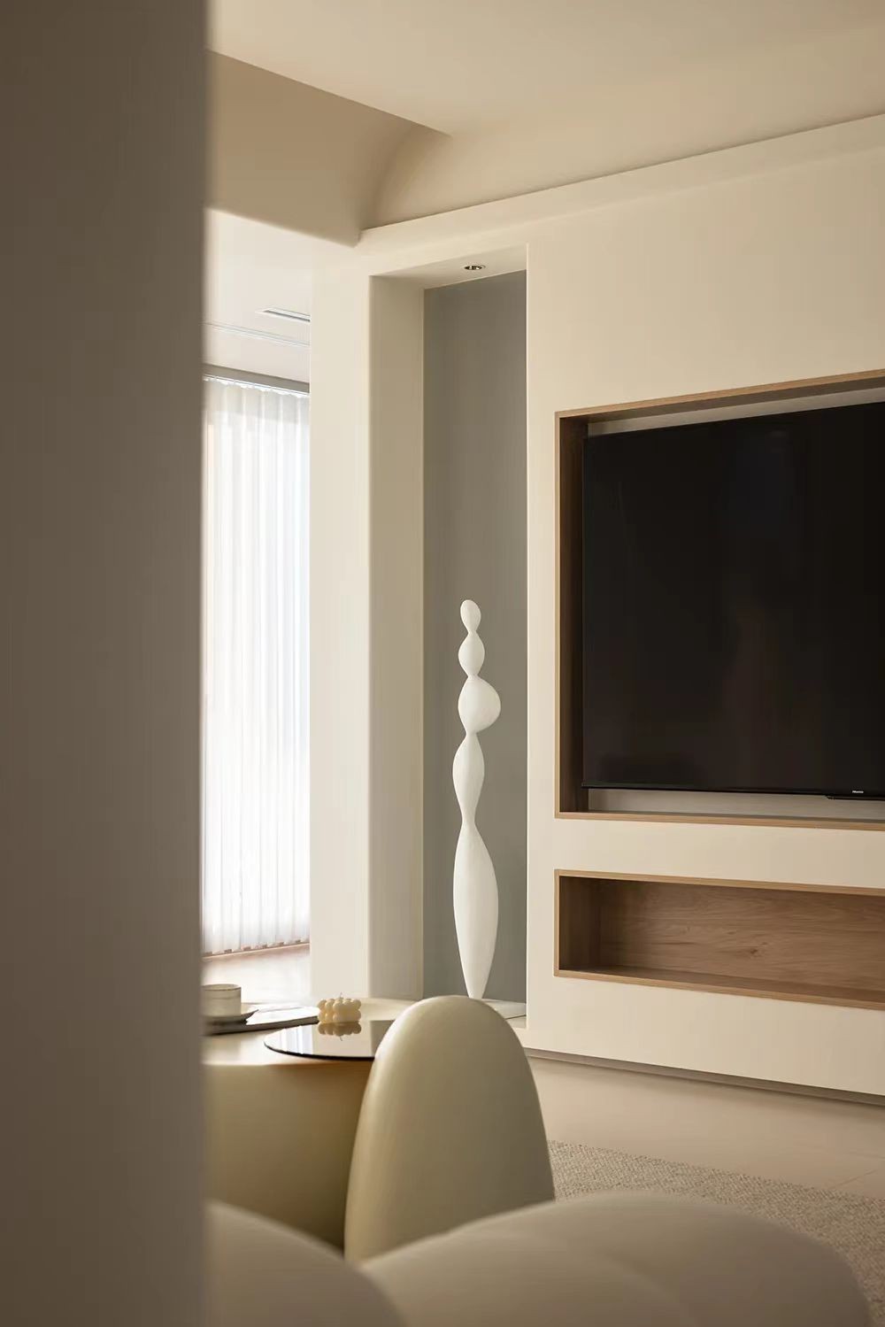 弧形双眼皮搭配浅胡桃地板,给奶油风格增项一些魅力。