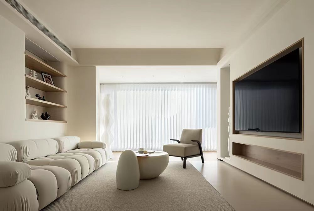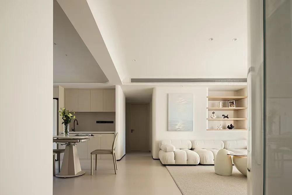 这是一套120平米的三居室。业主是一对非常恩爱的年轻人。想要一个温馨舒适的家。本案例设计师考虑到业主对家的要求很高,又想简单大气一点。所以给业主设计极简奶油风