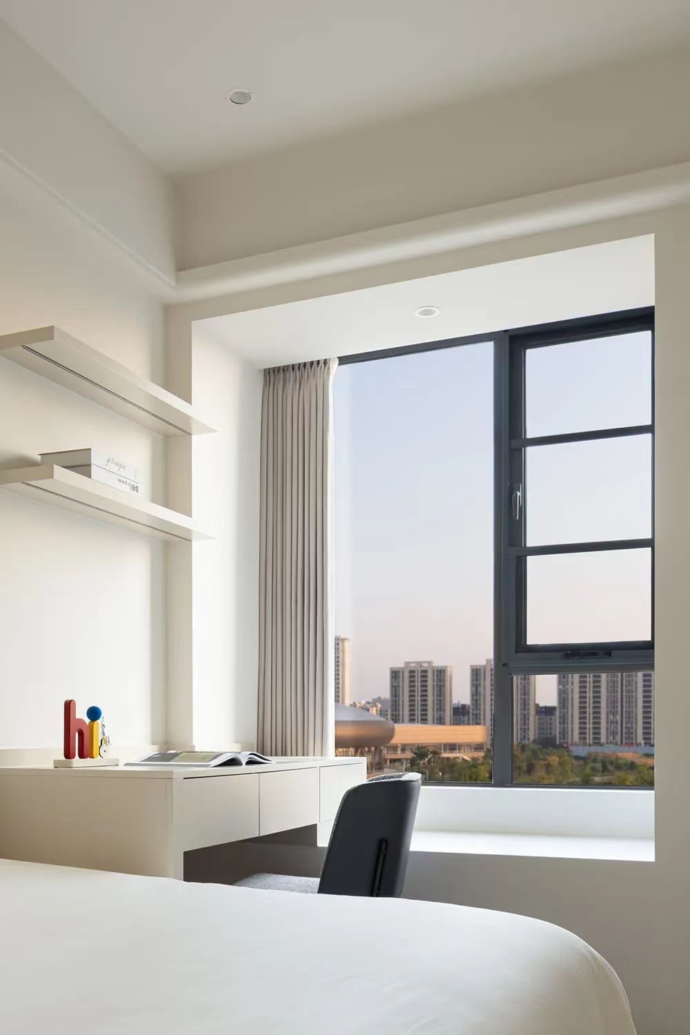 飘窗搭配小书桌,既可以办公又可以遥望外面的世界。