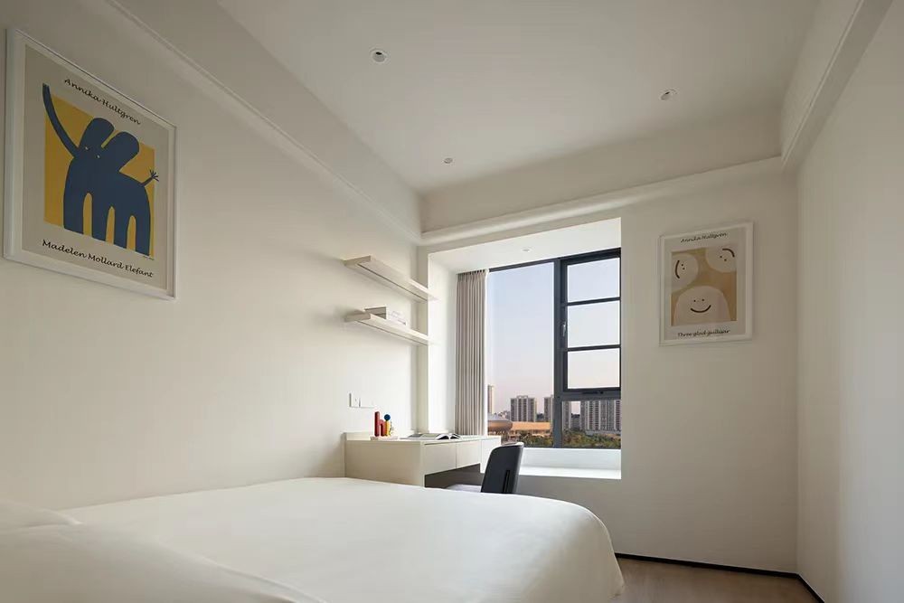 次卧极简的单配,为以后宝宝增加了一个新的空间