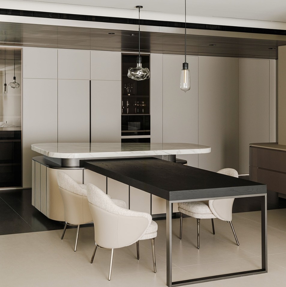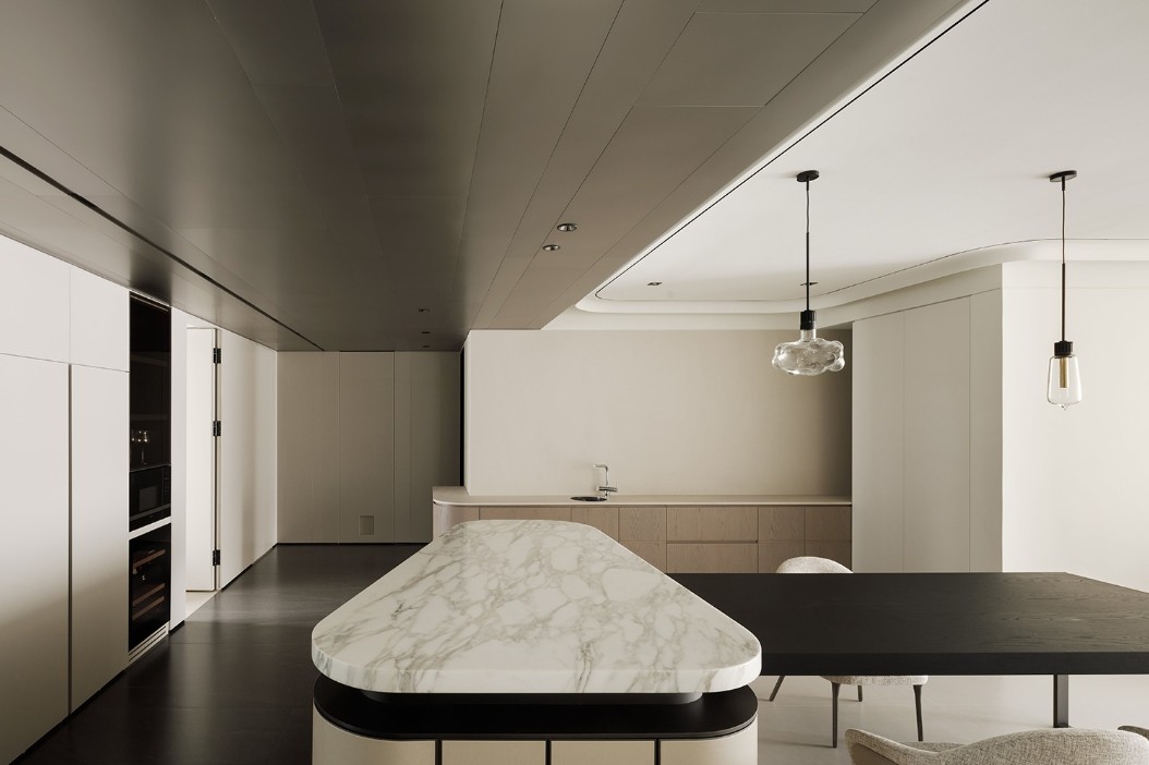 内嵌双开门冰箱和两个隐藏门,拓展出西厨功能,适应屋主不同使用场景的需要