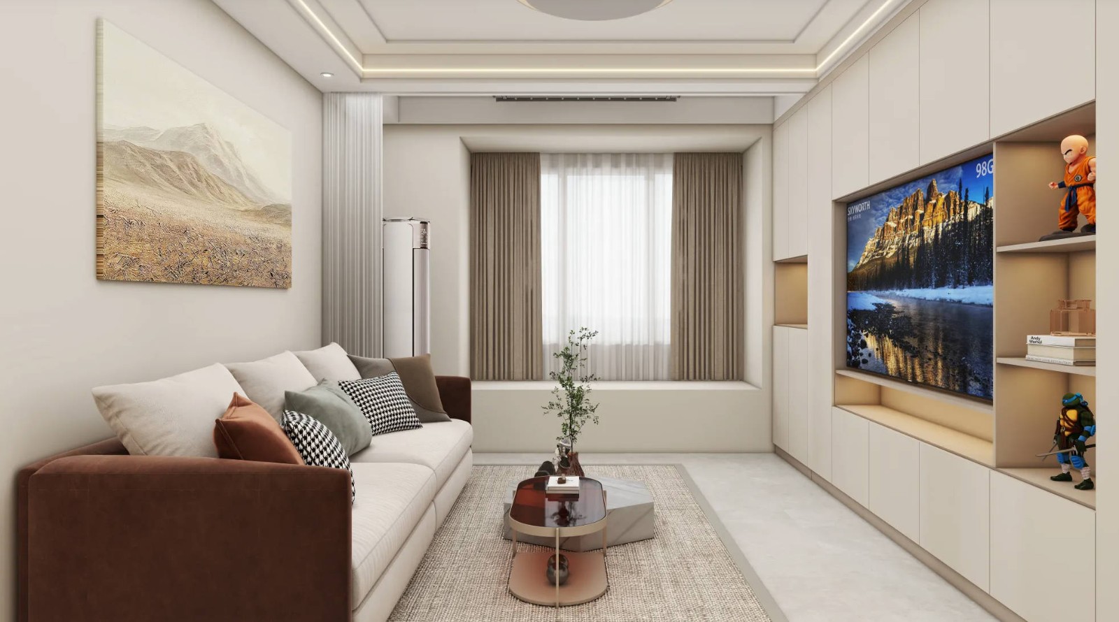 客厅飘窗设计亮点,看着晚霞喝着红酒,看夜晚喧闹的街道,感觉家的温馨。