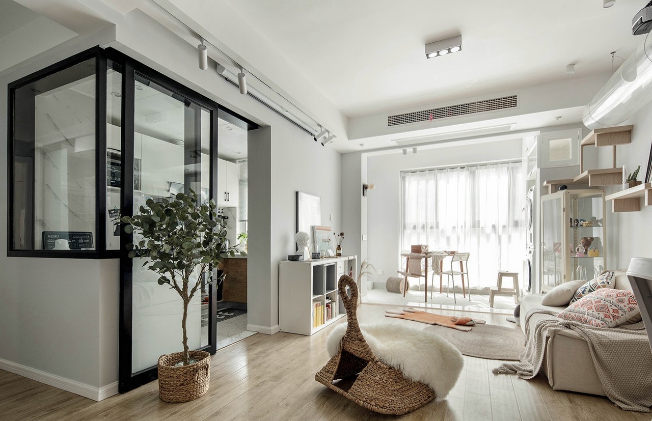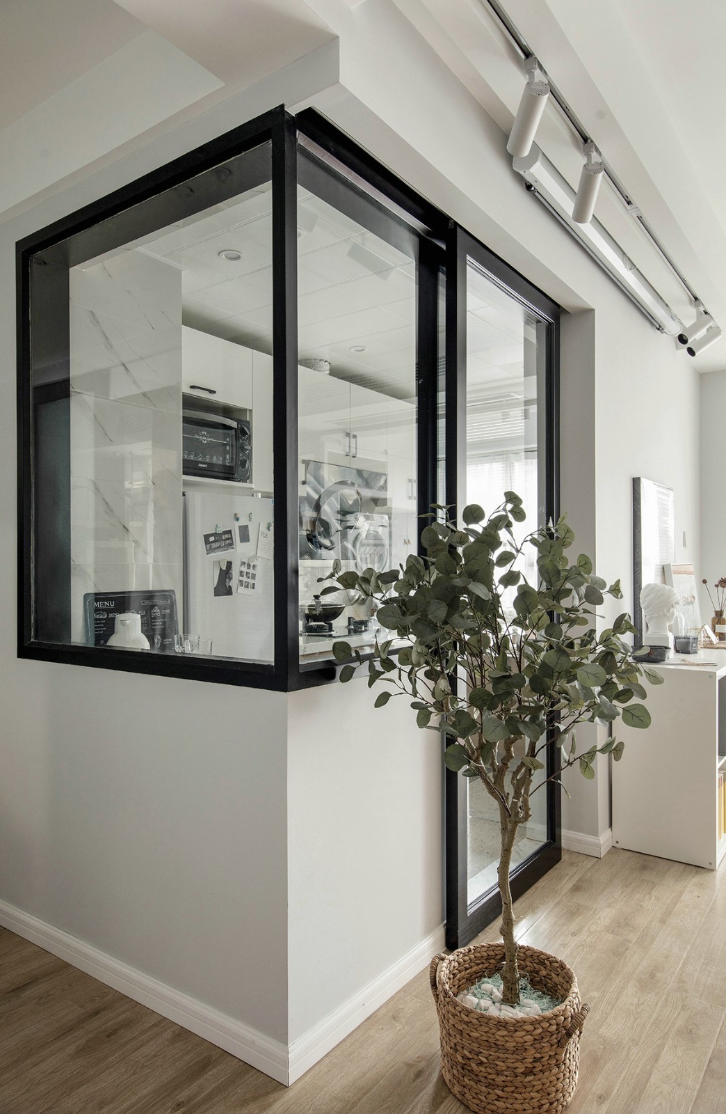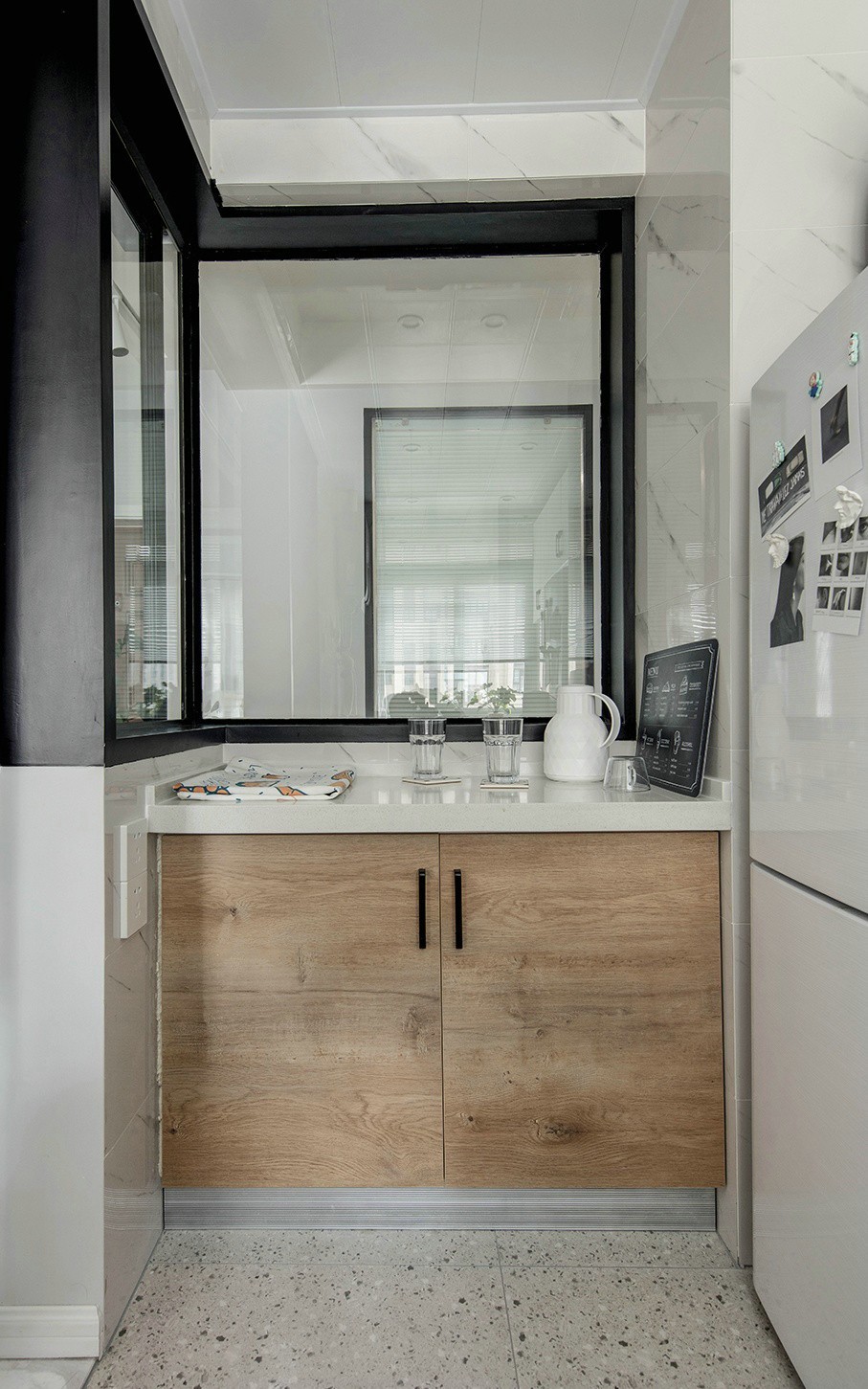 经过改造后,厨房所有可移动的墙体我们都改为了玻璃材质。