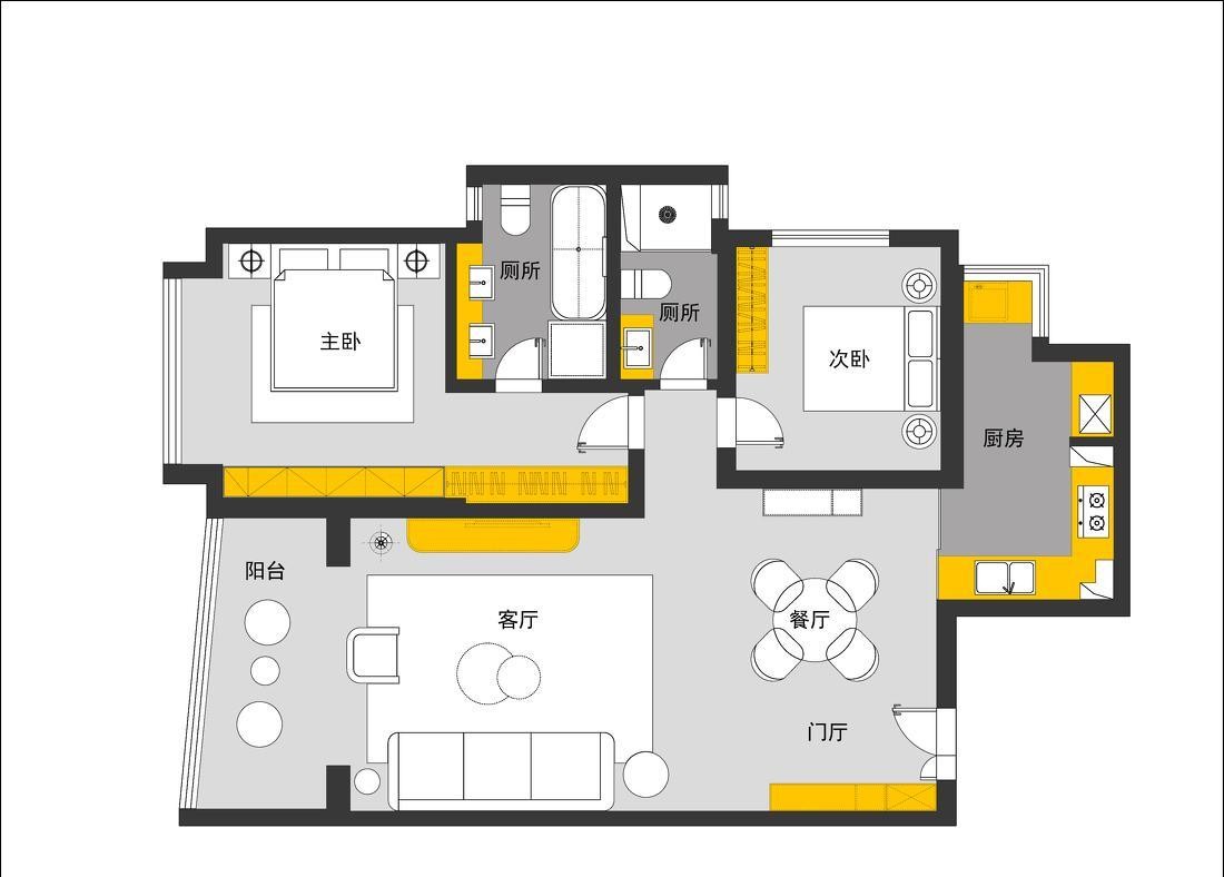 本案例户型三室两厅两卫