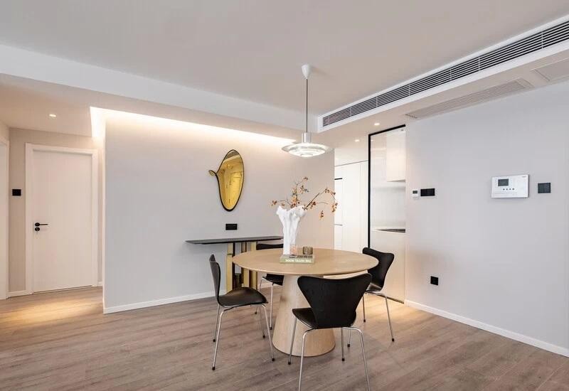 圆盘状吊灯优雅垂落,保持在合适高度,能够刚好照亮食物的美突出色泽,烘托用餐氛围。