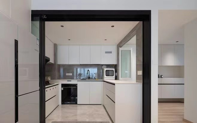 厨房是最能体现一家人生活方式的地方,选择了玻璃移门实现可开可合的厨房