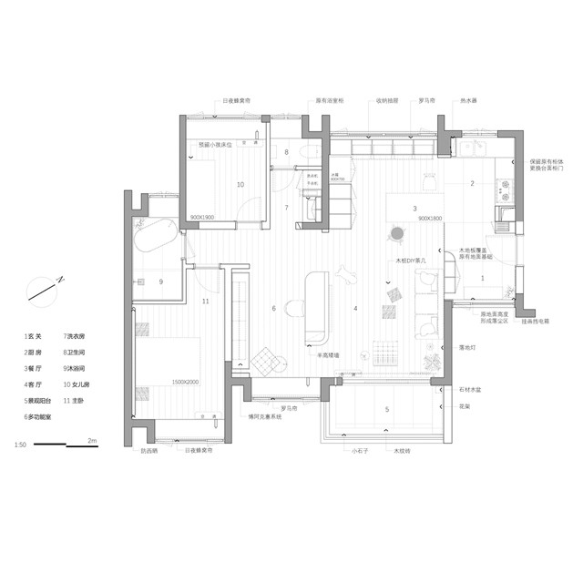 白墙与木材质的使用使空间简洁且亲切。