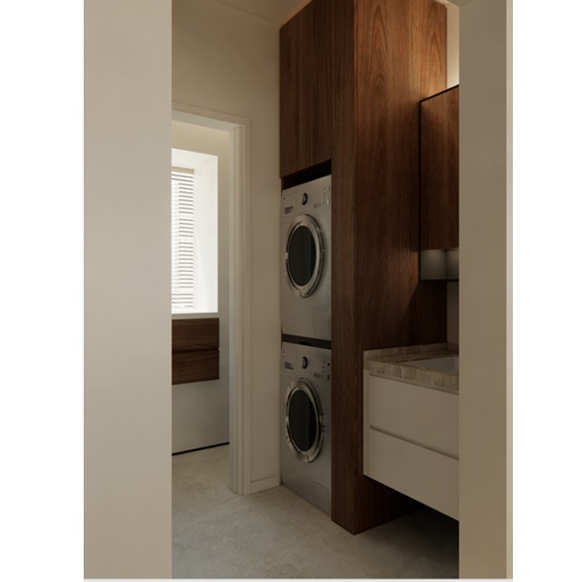 卫生间木材质的运用使空间更加亲切。