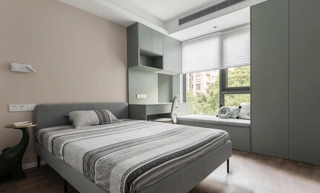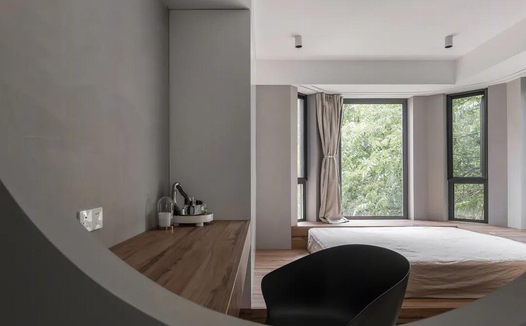 主卧空间设计师打破传统思维布局,将窗外的四季美景结合,把主卧打造成民宿的感觉