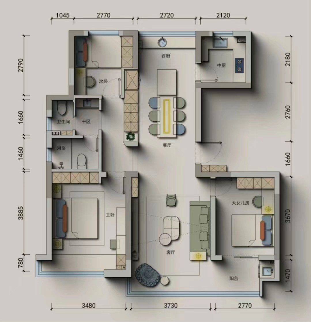 可多人操作的厨房,经过改动,活动动线流畅,整体感觉通透