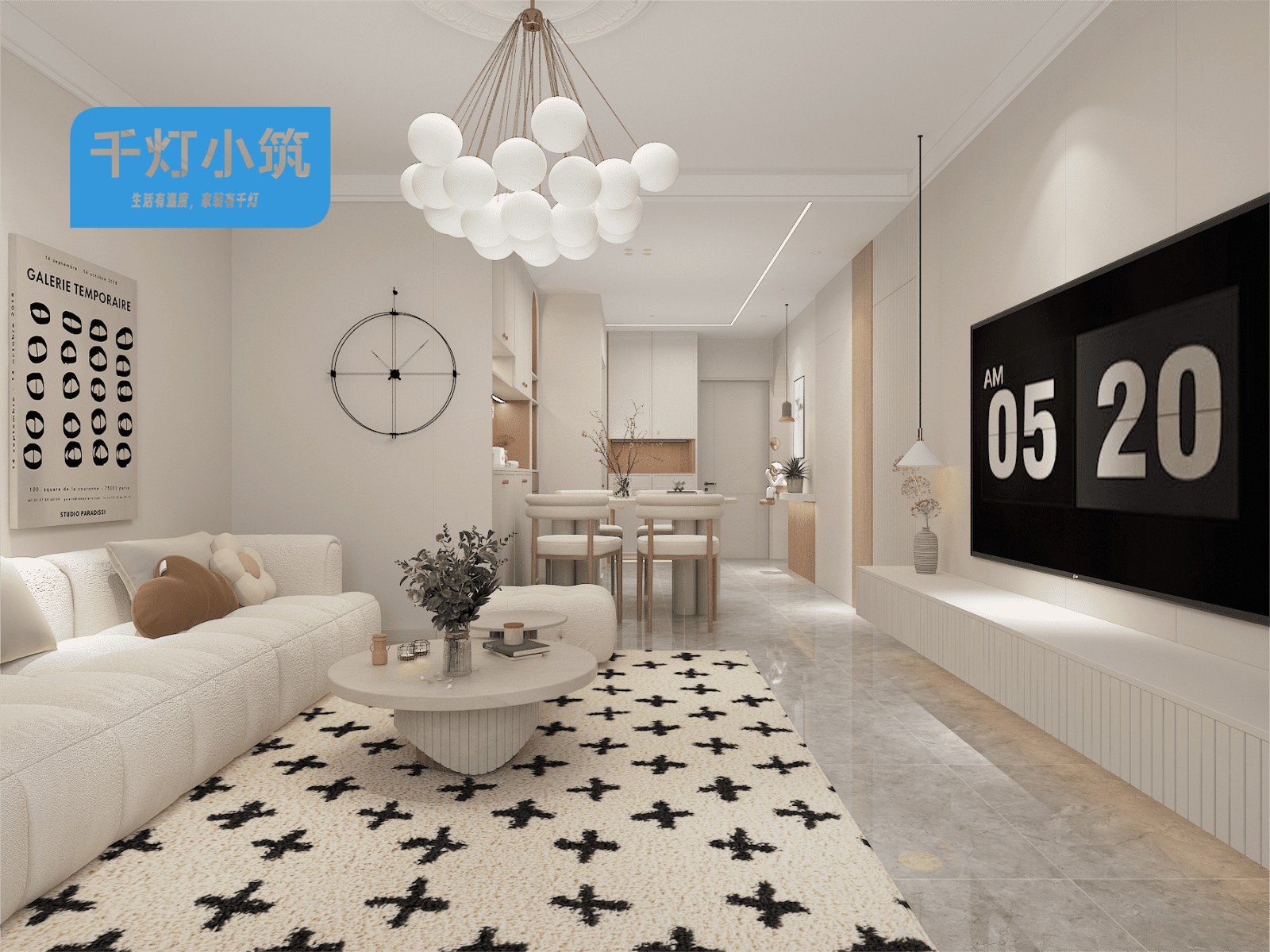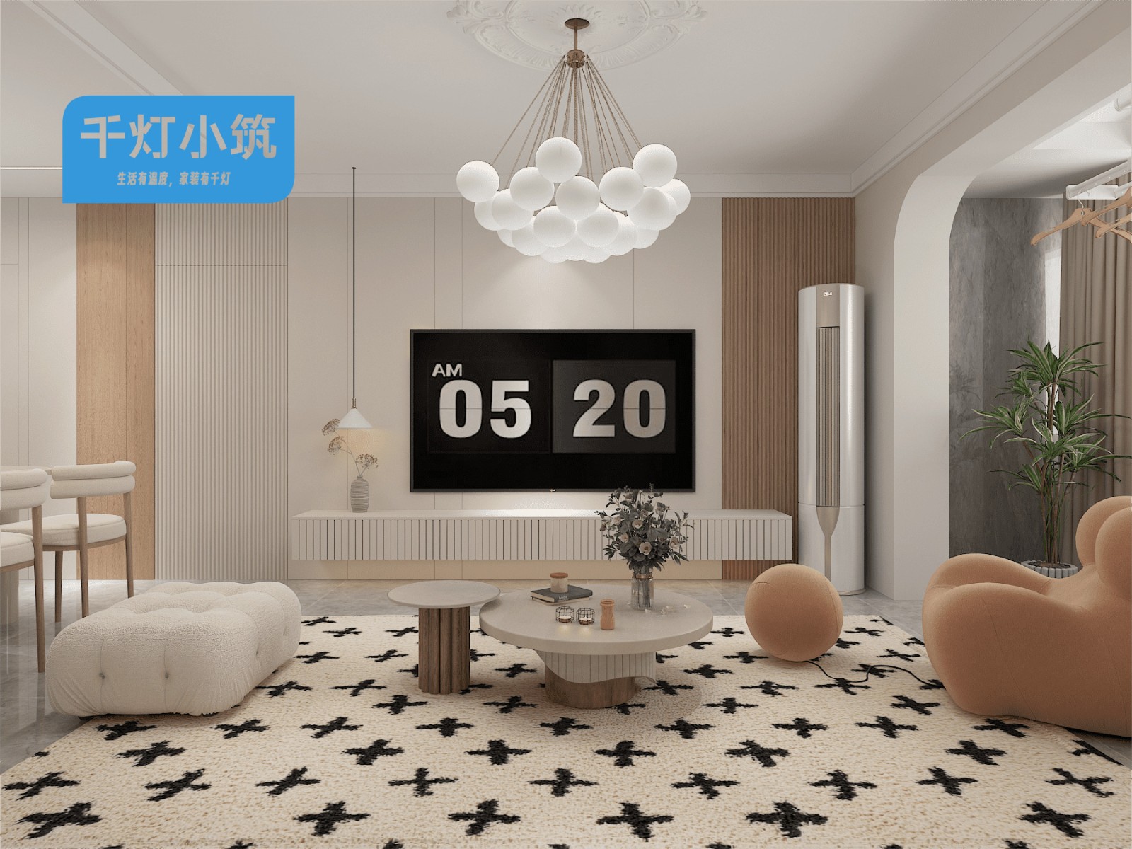 客厅作为家庭活动的中心区域,以奶油色为主色调,营造出温馨、舒适的氛围。