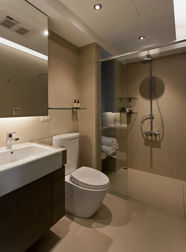 满足日常的使用,利用简单的淋浴隔断做干湿分离。