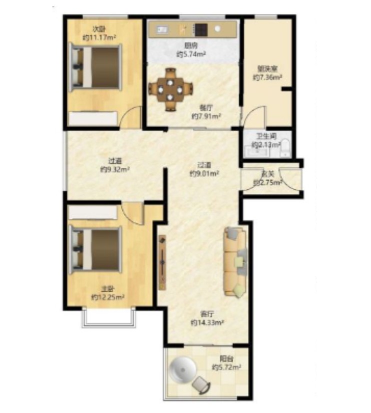 两室 两厅 一厨 一卫