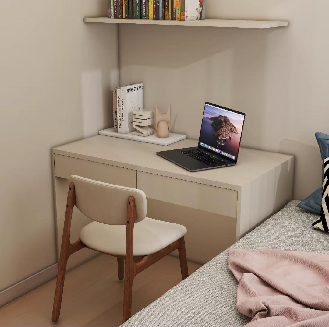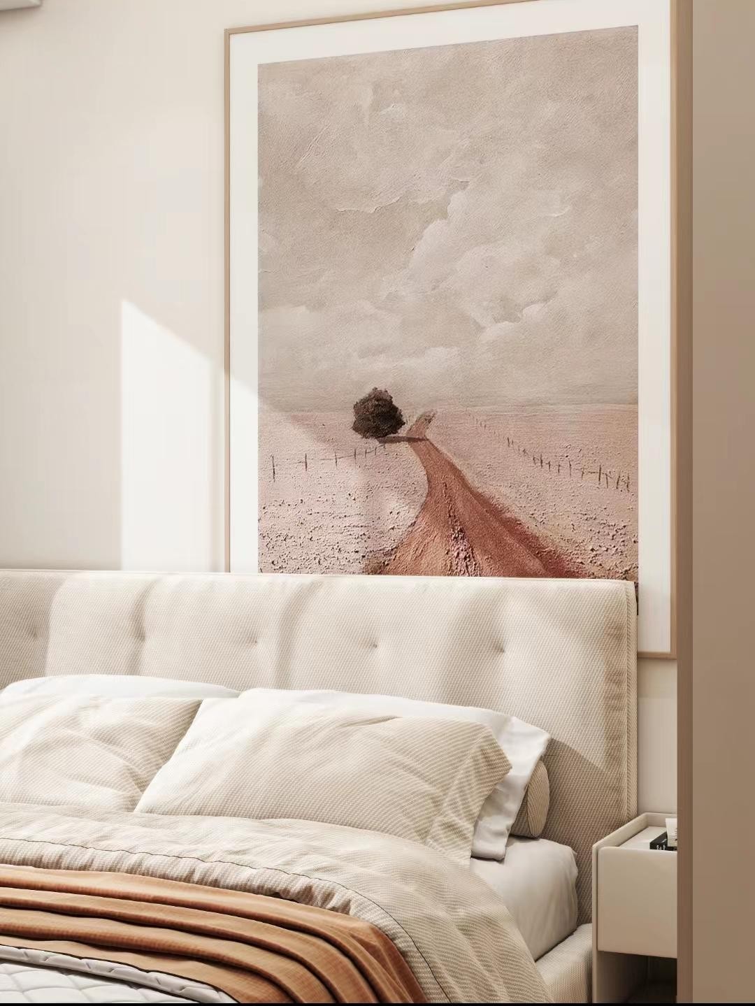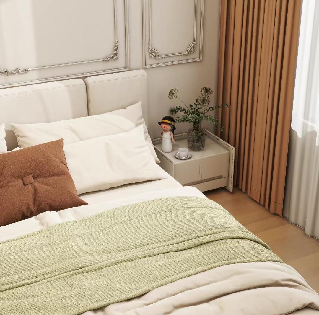 奶油色柔和舒缓,简约精致的法式线条设计背景墙让卧室多出了一份慵懒浪漫的气息。