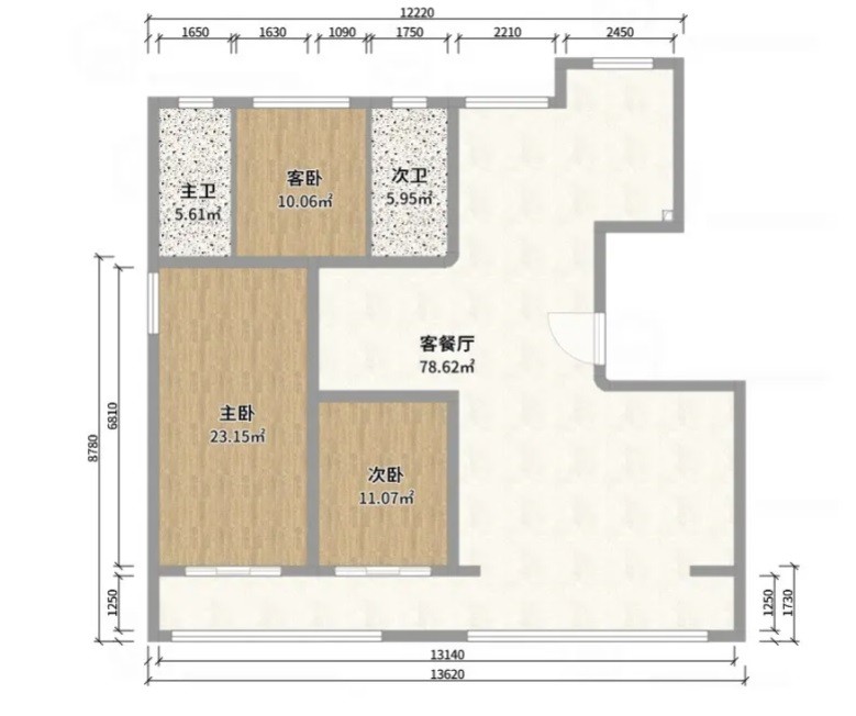 该户型是三室一厅户型,其客厅较大,更好的对其中进行设计。