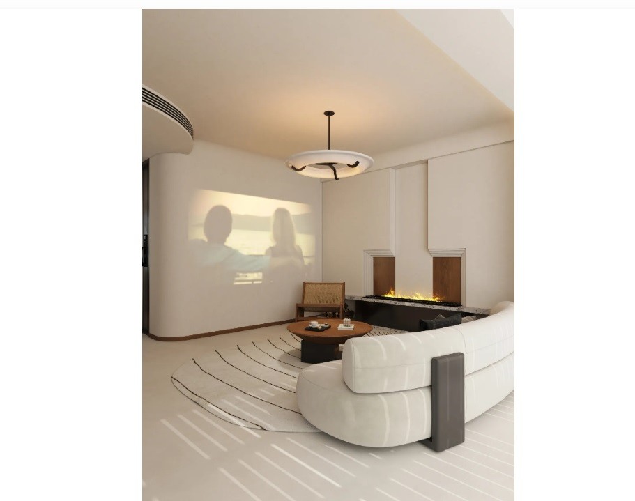 客厅做圆弧背景墙,让其不会看着空旷,丰富了原有空间,增加投影使用,住户观感更佳。