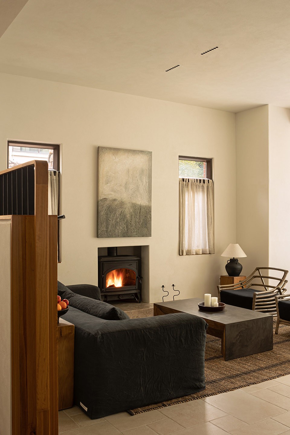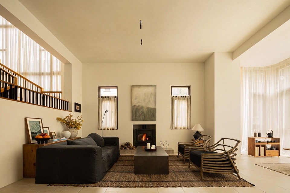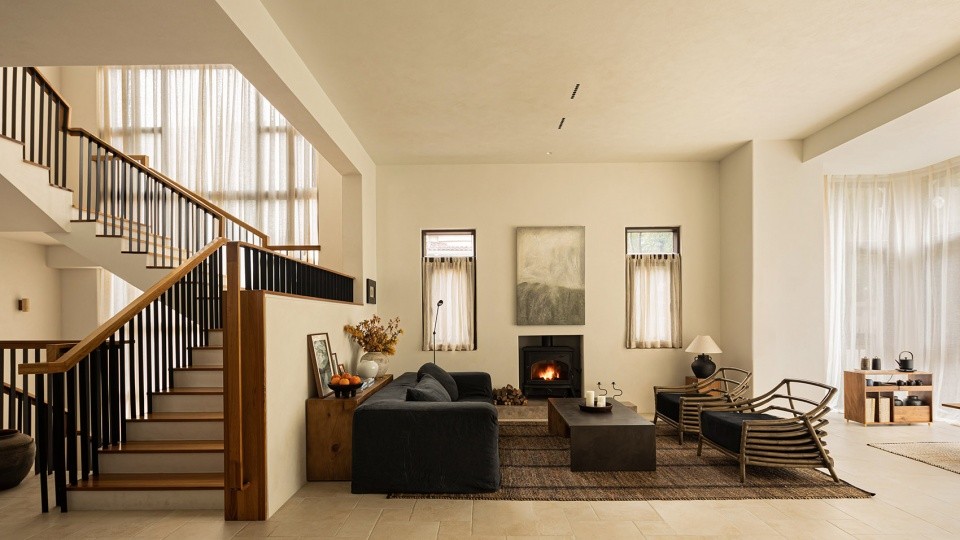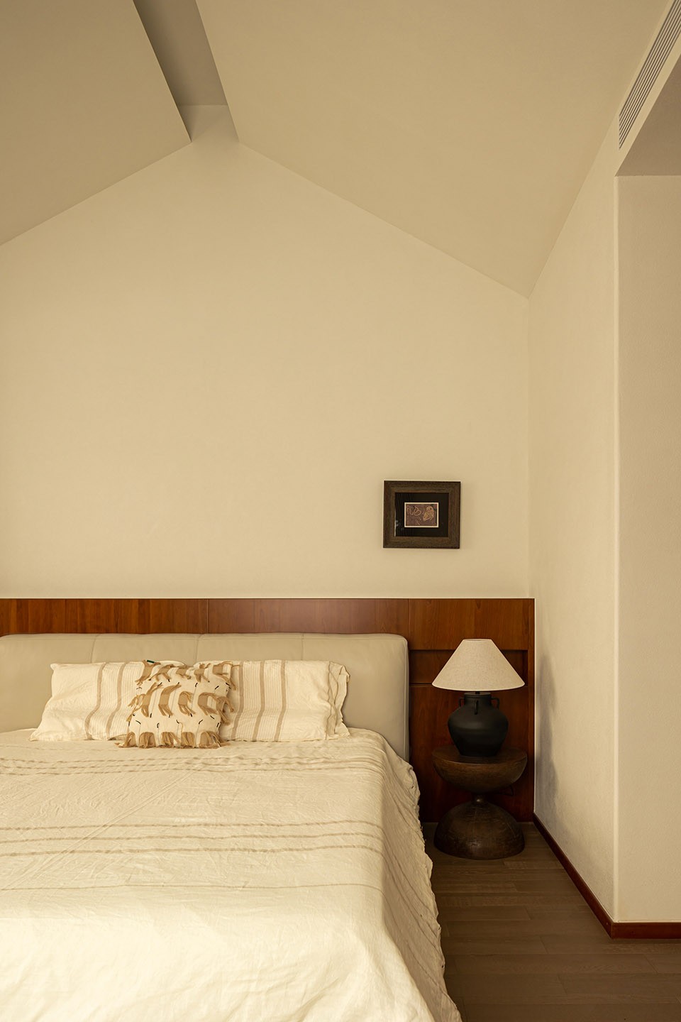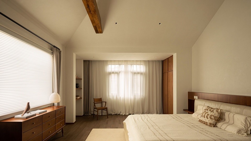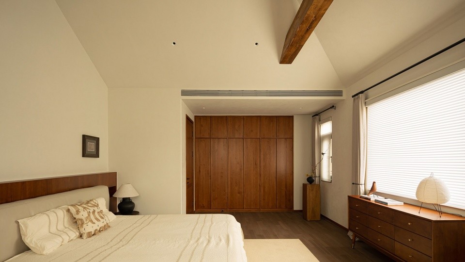 斜屋顶下,木横梁贯穿,不仅独特美观,更增添了一份温馨与亲近感。