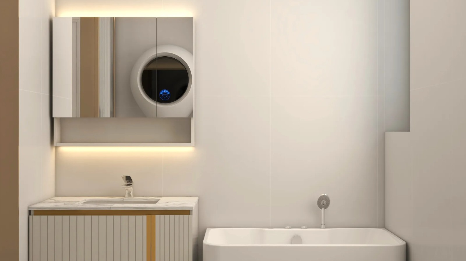 卫生间设计简洁,使用天然石材或原木风格的瓷砖。洁具选择简洁线条,颜色与自然元素相协调。
