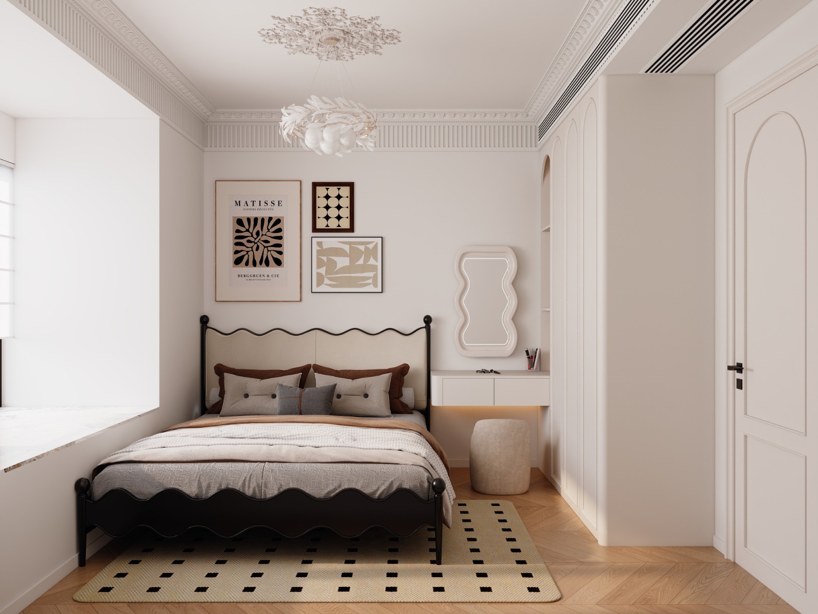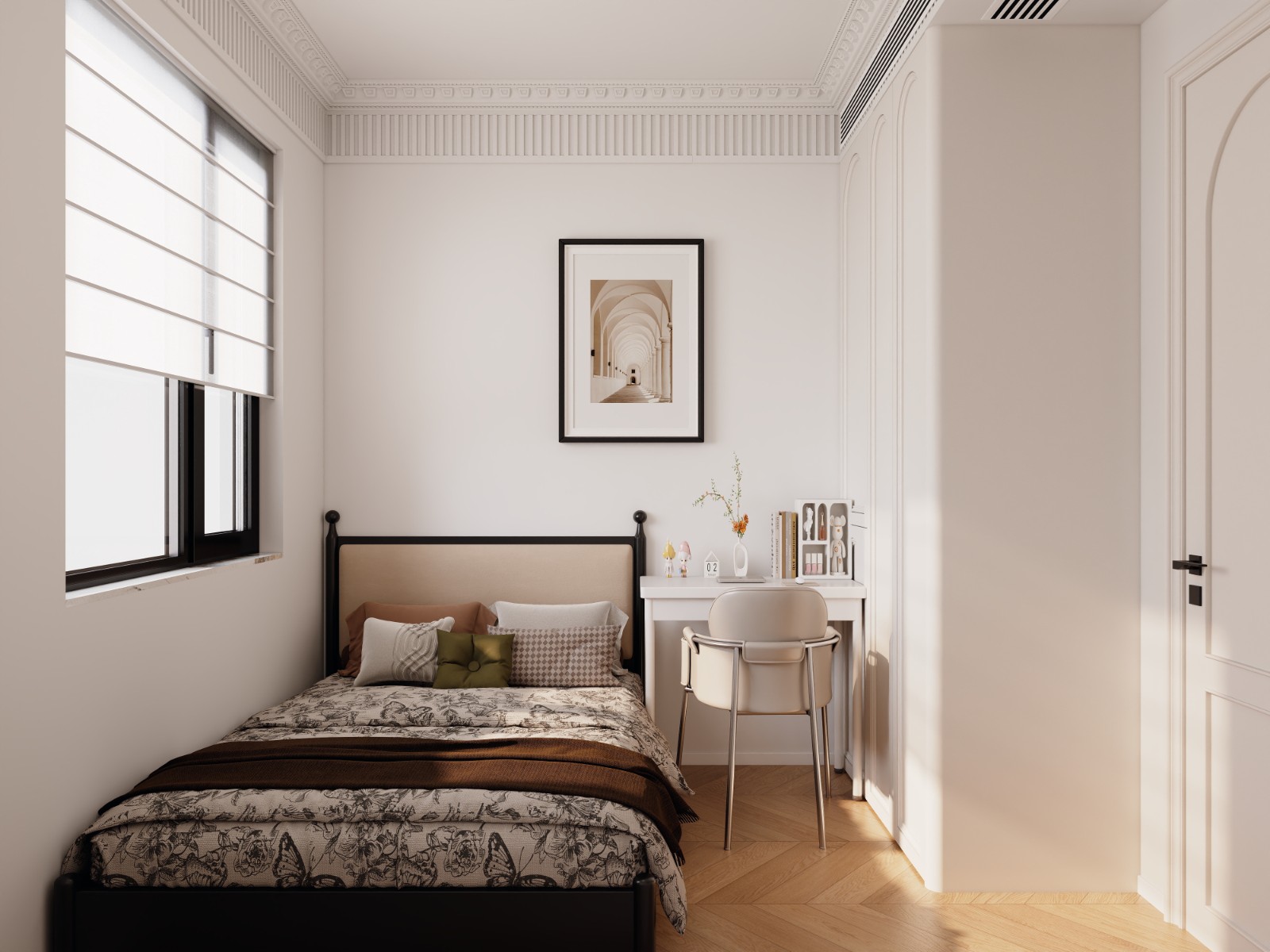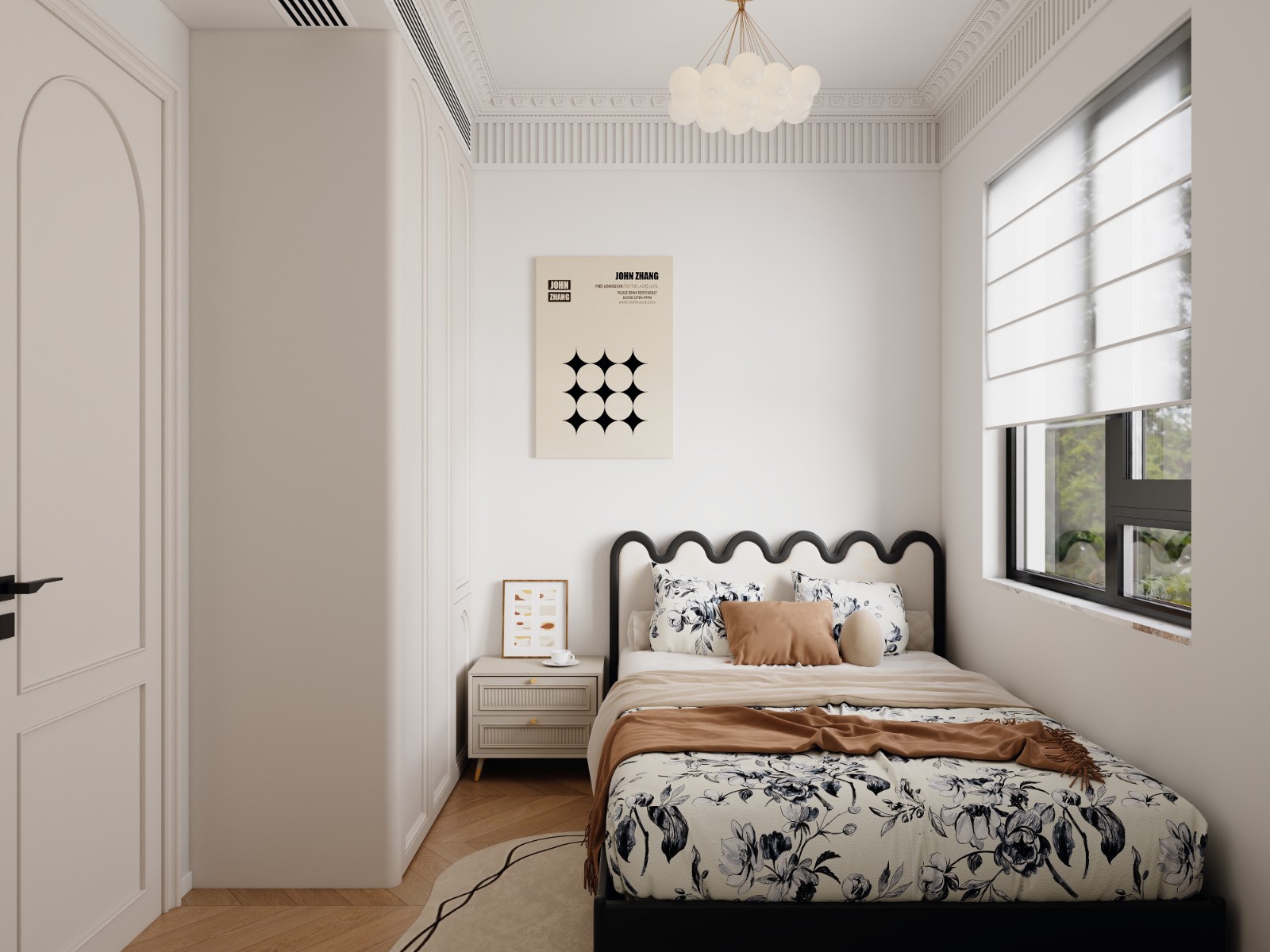 客厅经过精心布置。与电视背景相对的一面特意设计了展示柜,展示柜采用乳白色,使浅橘色为主的客厅显得活泼生动,更通过突出饰品自身的魅力展示主人的富足和品位;地面及部分墙面运用了天然大理石做饰面,显示豪气尊贵。