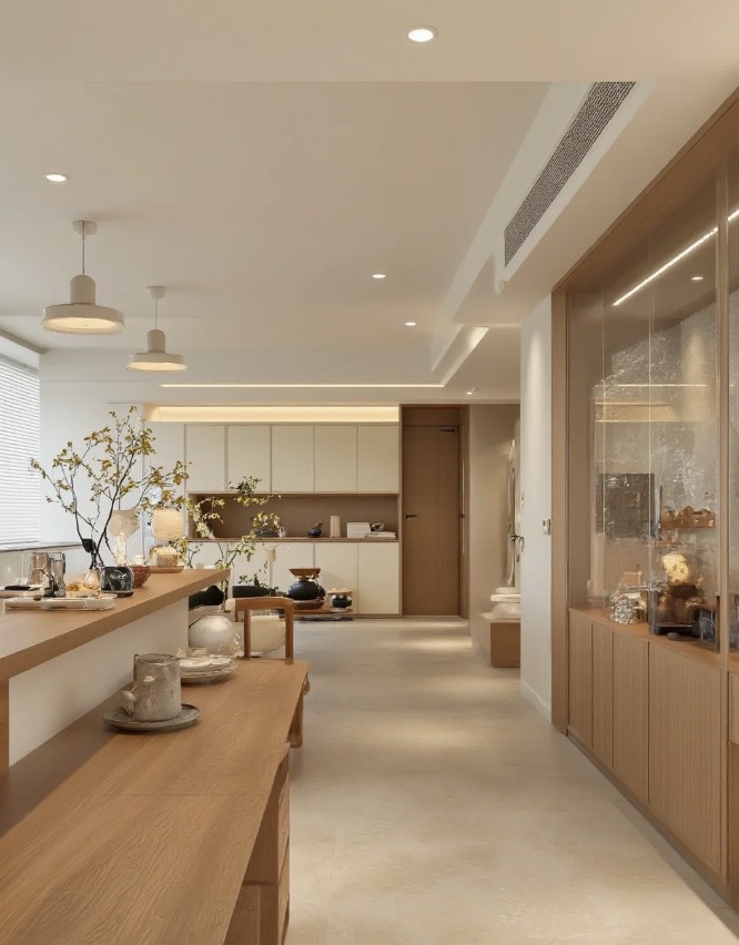木质餐桌搭配藤编椅子,自然又舒适。餐边柜不仅实用,还为空间增添了一份整洁和温馨。在这里用餐,每一口都充满了家的味道