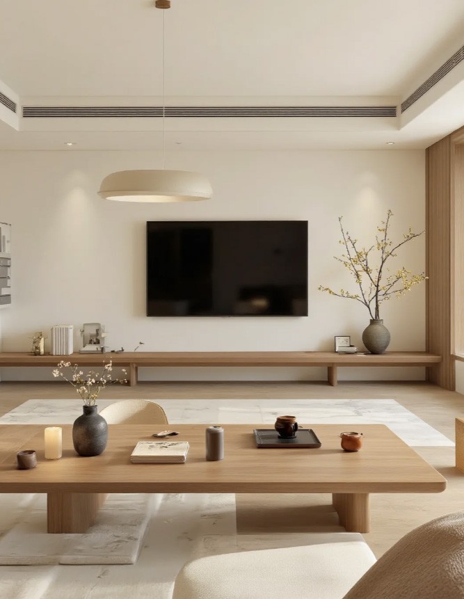 没有花里胡哨的设计,简简单单的木质置物台,摆上几支干花和小摆件,***感这不就来了~电视一开,就是我的***。