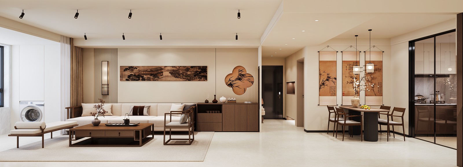 崇尚自然,以低饱和度、中性色为主,如米白、青灰、墨色、原木色等,追求和谐雅致,避免浓烈刺激的颜色。
