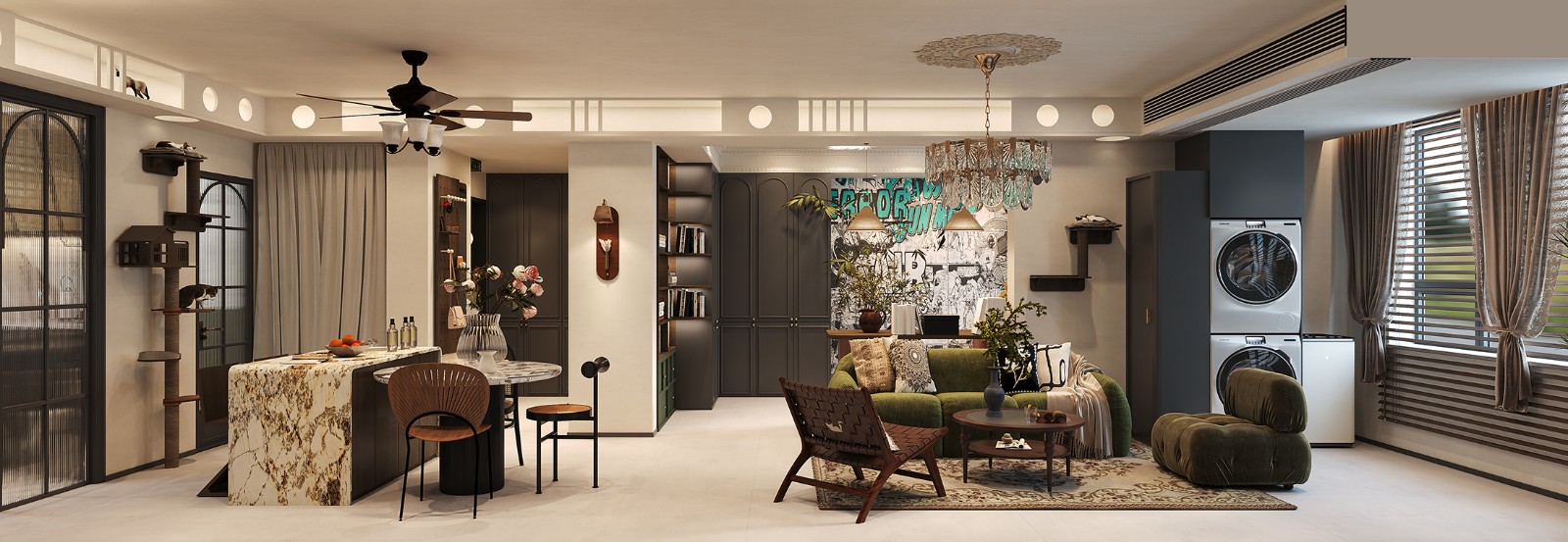 融入圆形、弧形等曲线元素,凸显空间的慵懒之美。