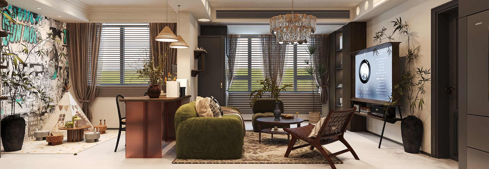 南洋风格装修融合了东南亚地区的特色元素呈现出自然、复古且充满异域风情的氛围。