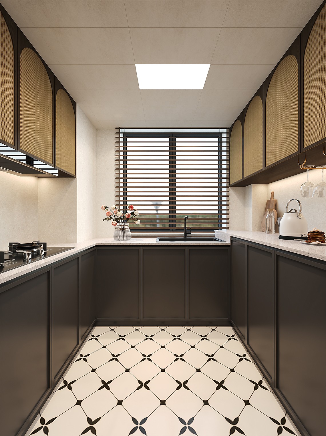 骨骼线橱柜和编织吊柜的组合,是打造南洋风格厨房的***选择。这两种元素分别从线条和材质上,精准地抓住了南洋风格的精髓。