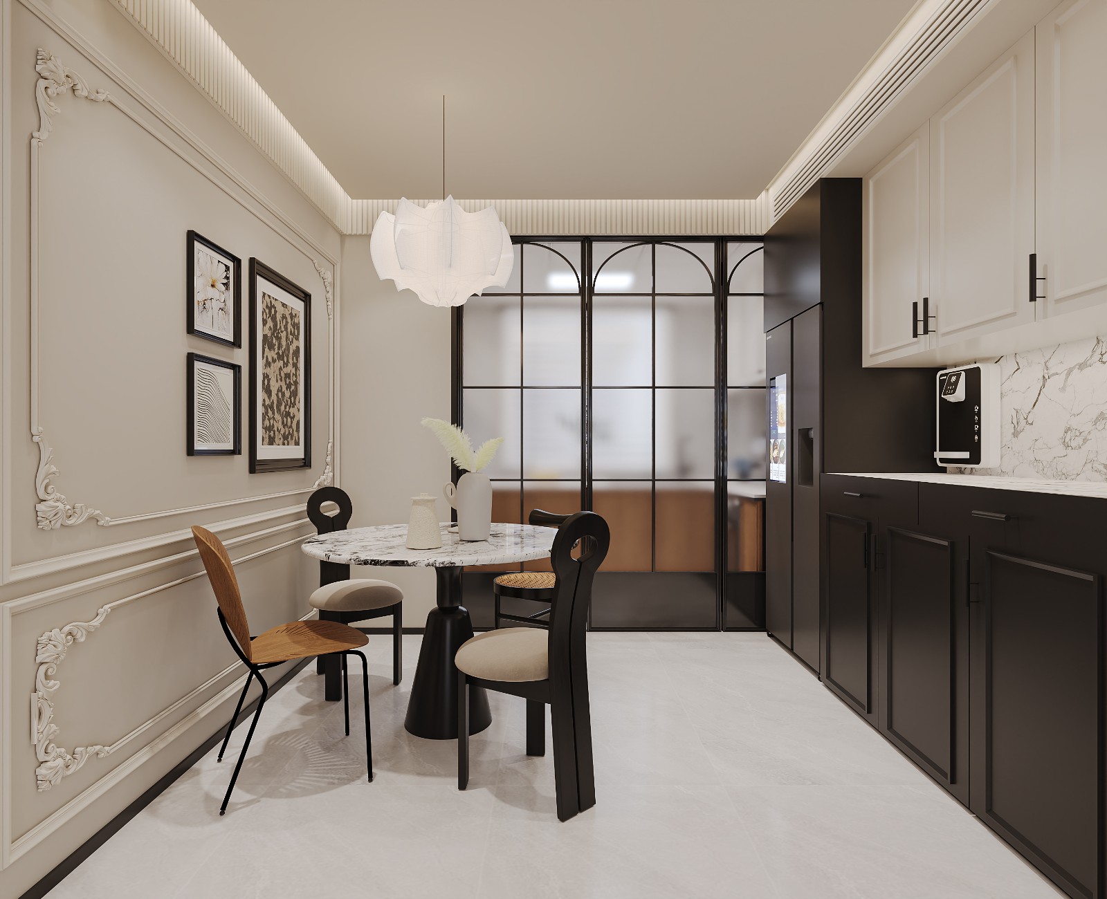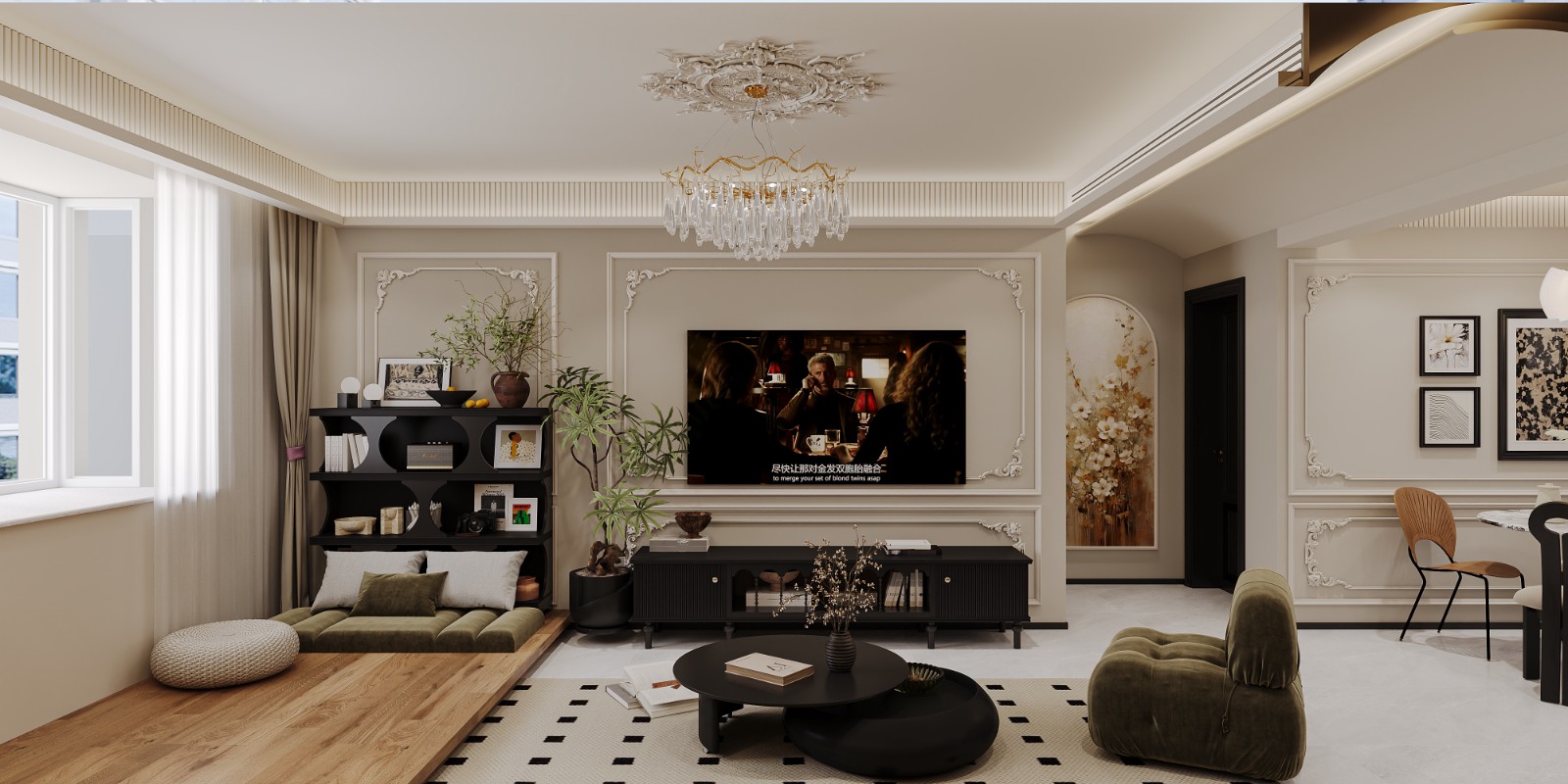 石膏线、护墙板和雕花装饰,它们被用来勾勒墙面、天花板和家具的轮廓,创造出丰富的层次感。
