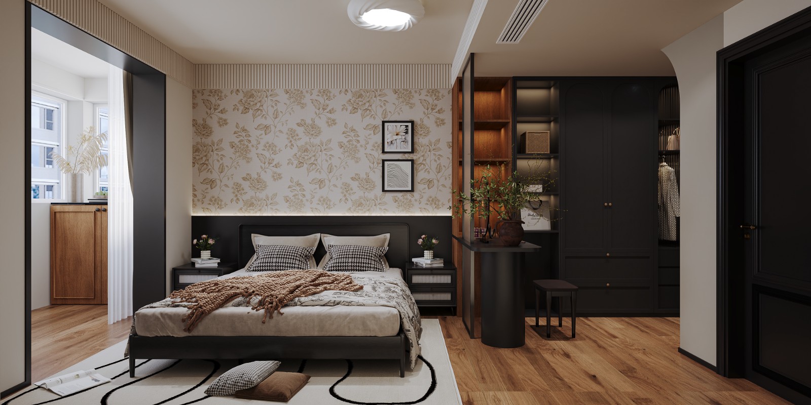 法式奶沺风格的卧室,核心就是“温柔”和“浪漫”。