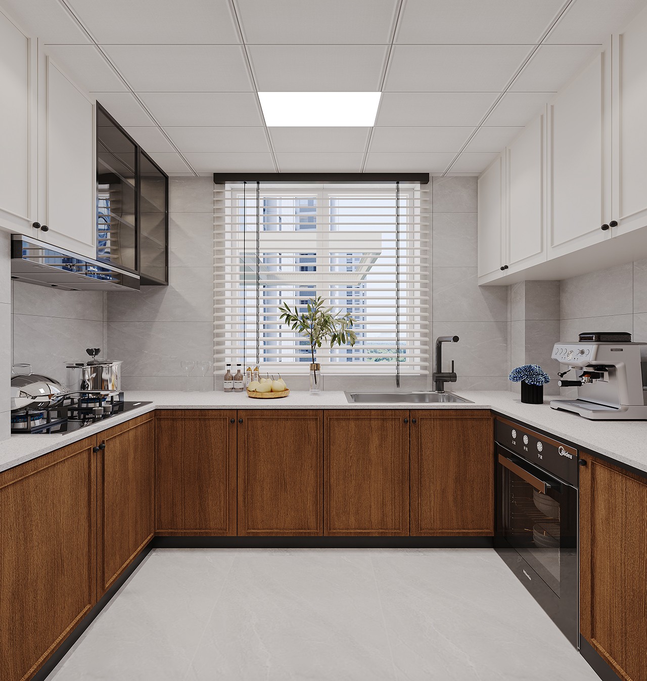 橱柜是更柔和的米白、木色等作为空间的底色。这些颜色比纯白更有质感,也更容易营造温馨的氛围。